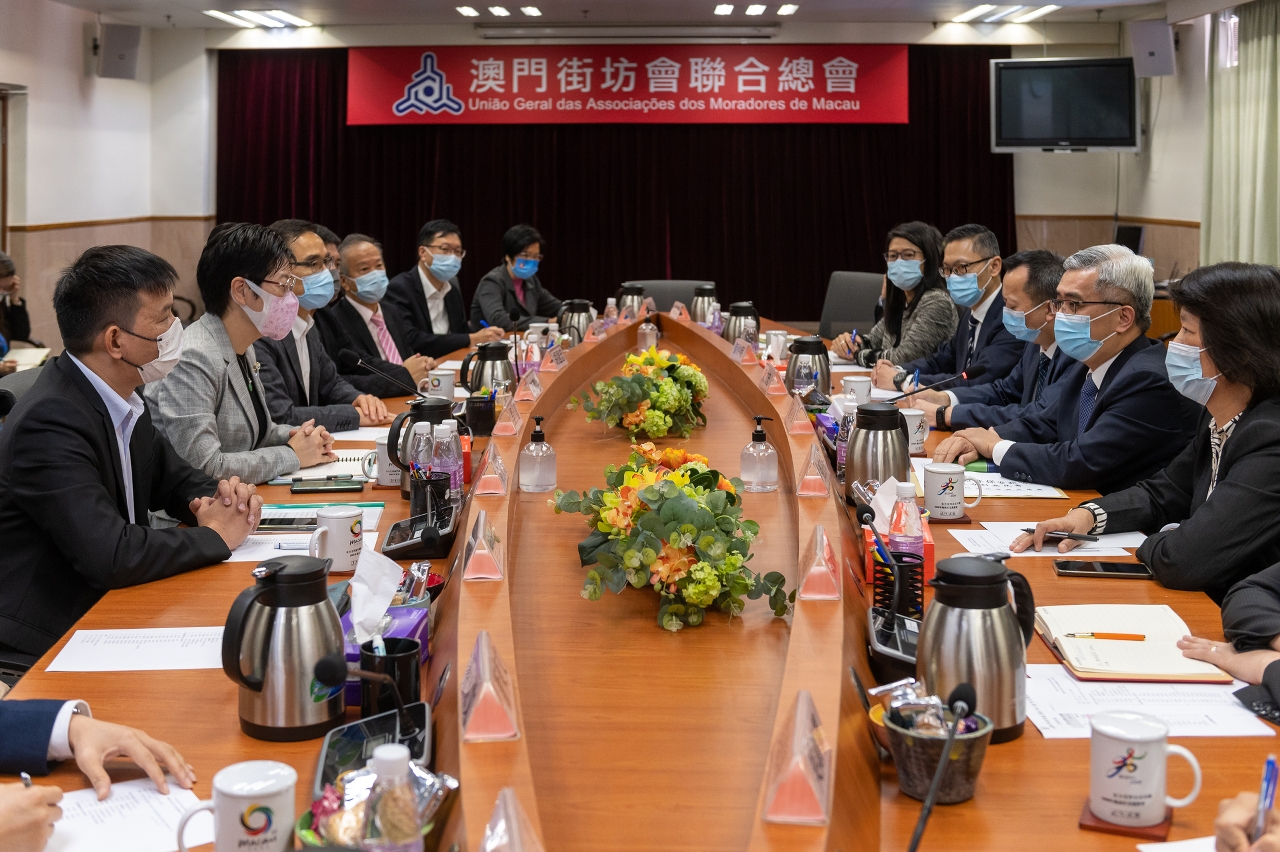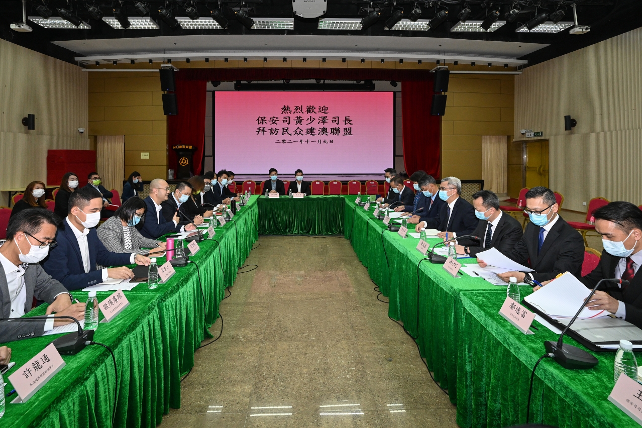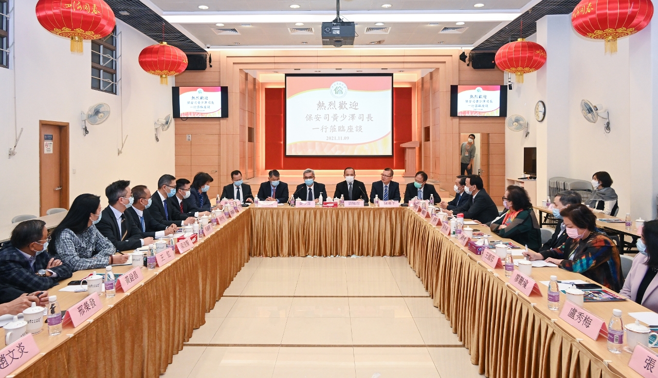 保安司黃少澤司長日前率領警察總局梁文昌局長、海關黃文忠關長及轄下多個部門的領導,先後拜訪澳門工會聯合總會、澳門中華總商會、澳門婦女聯合總會、澳門街坊會聯合總會、民眾建澳聯盟和澳門歸僑總會等社團,聽取和收集各社團代表對保安範疇明年施政工作的意見和建議。工聯何雪卿會長、中總馬有禮會長、婦聯賀定一會長、街總吳小麗會長、民建聯施家倫主席,以及僑總劉雅煌會長分別率其社團主要負責人出席會談,各社團代表就疫情防控措施、防災減災、社區安全等議題提出許多寶貴及具建設性的意見和建議,會談取得良好成效。