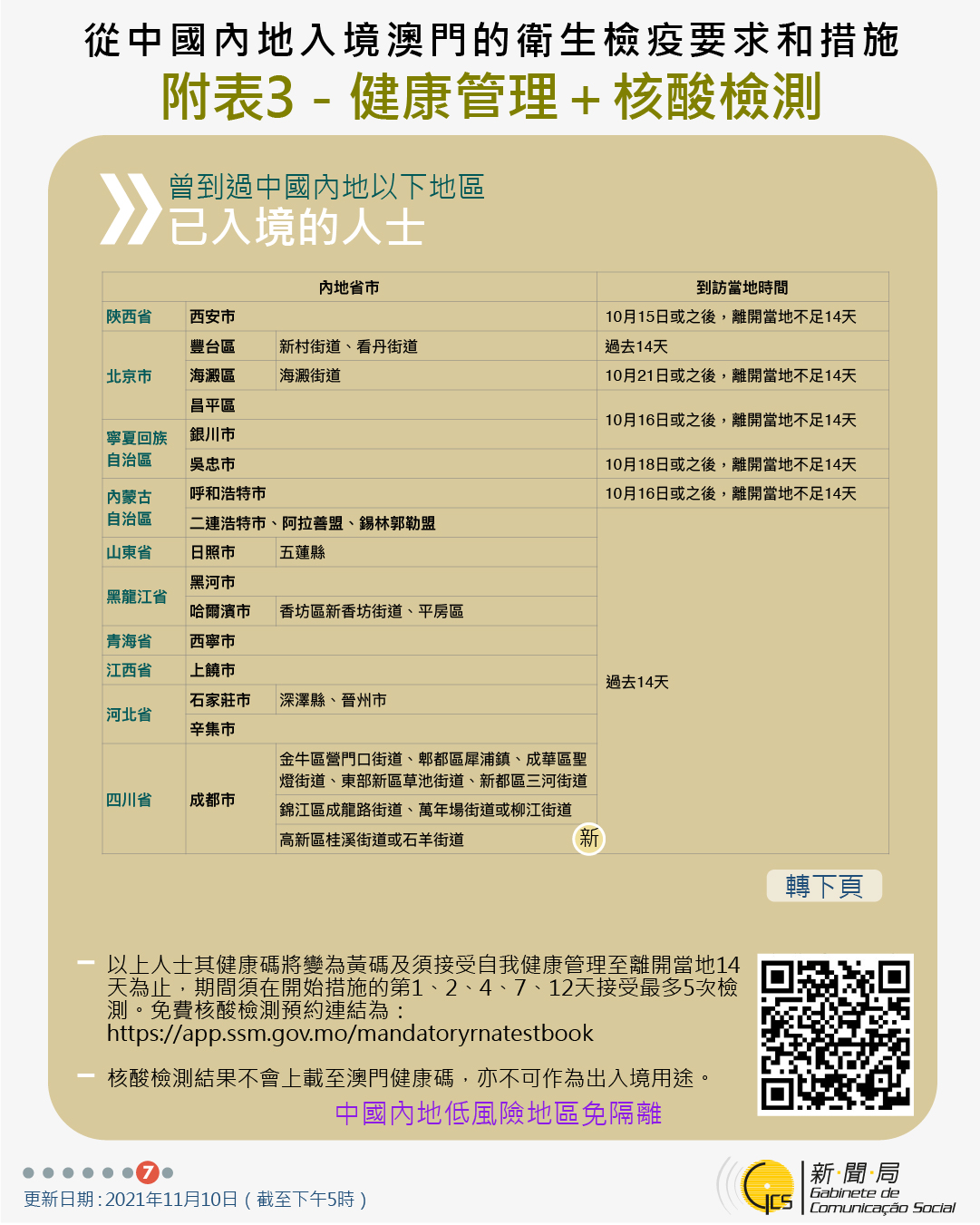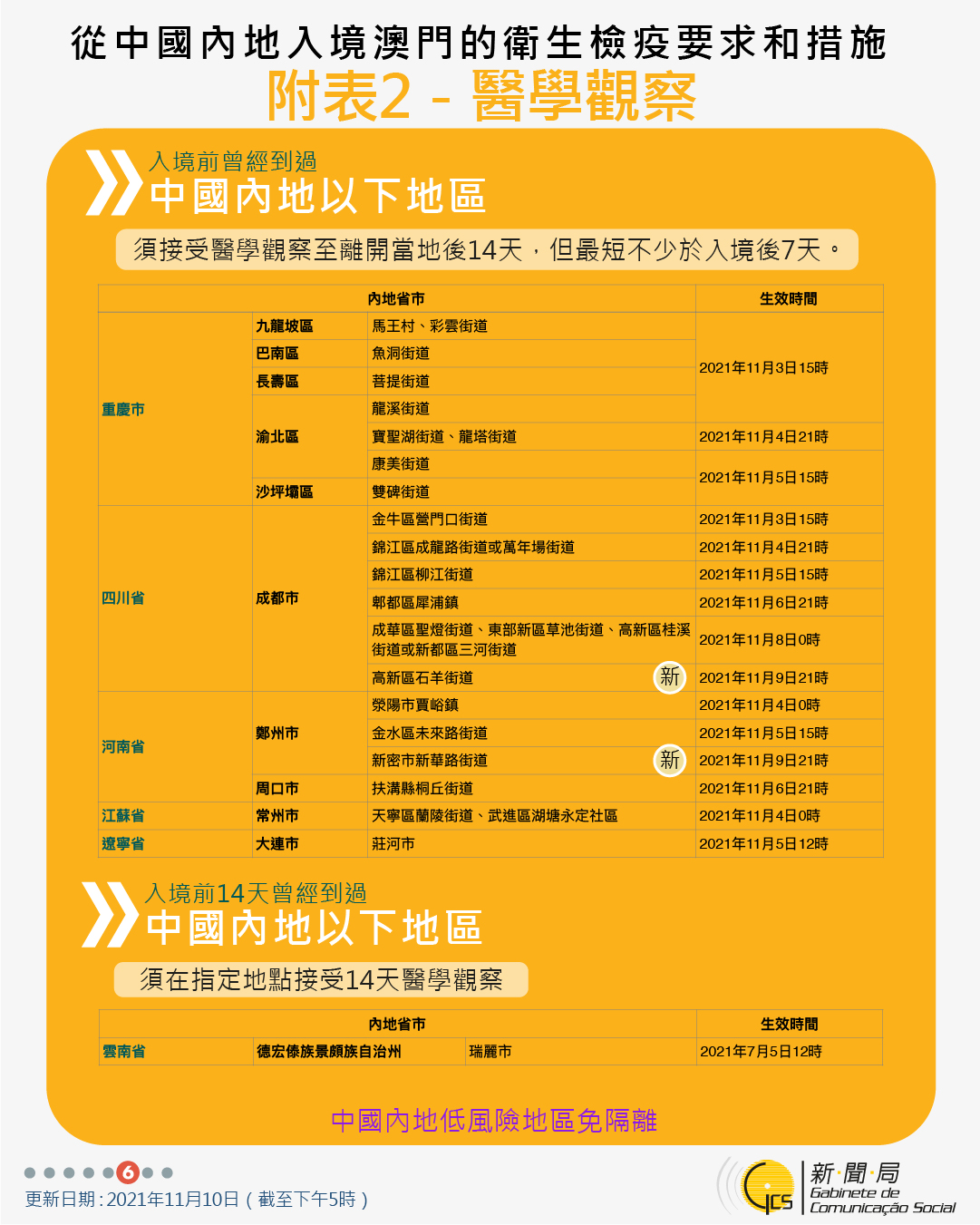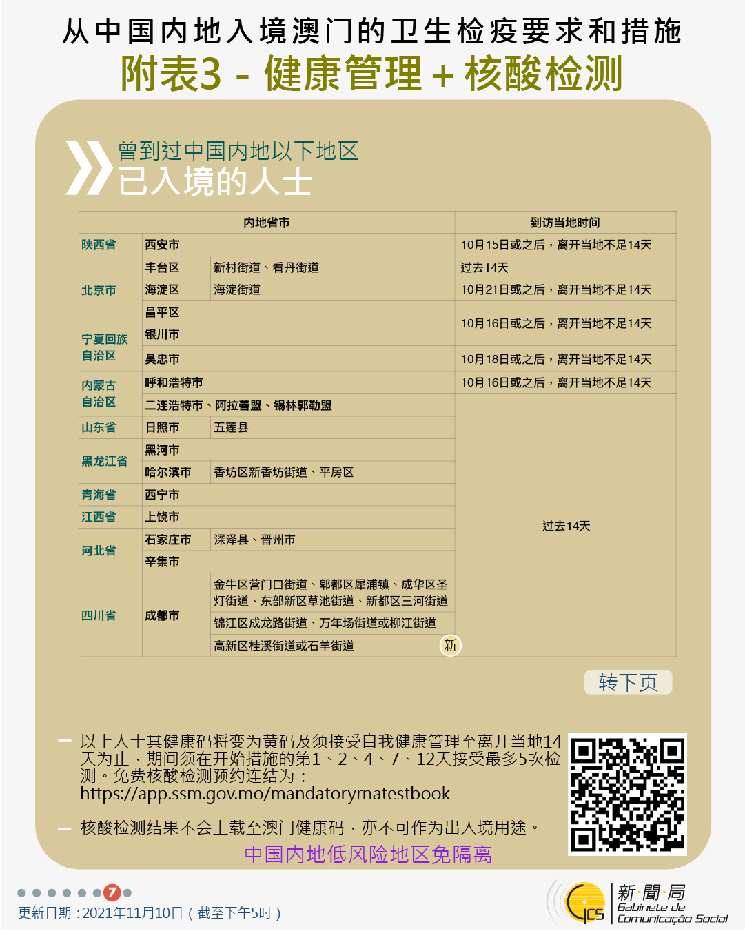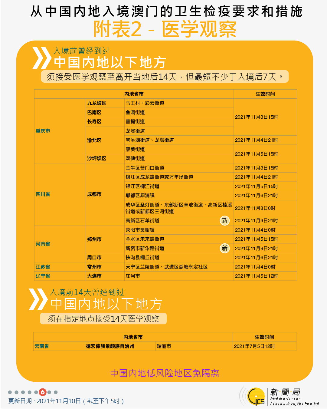 【圖文包】2021/11/10最新入境澳門衛生檢疫要求和措施