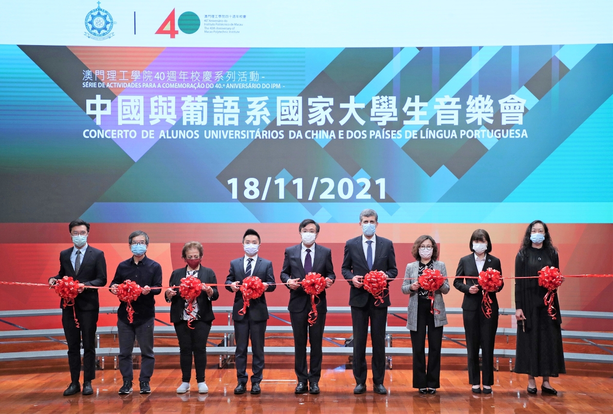 “中國與葡語系國家大學生音樂會”在澳門理工學院禮堂舉行,由澳門特區政府教育及青年發展局副局長丁少雄、東方葡萄牙學會會長夏祖堯(Joaquim Coelho Ramos)、澳門葡人之家協會主席安瑪莉(Maria Amélia António)、澳門理工學院院長嚴肇基、秘書長李惠芳、藝術高等學校代校長黎明海、學生會理事長錢珮茵、校友會理事長黃宇棋及音樂課程副教授梁詠茜主禮,音樂會並向葡語系國家及地區及大灣區同步直播。澳門理工學院致力搭建中葡文化交流平台,助力推進澳門成為中葡文化交流中心。隨著粵港澳大灣區合作的深入推進,澳理工也逐步把中葡文化的交流成果帶進“人文灣區”的建設中。是次音樂會匯聚大灣區和葡語系國家高校共同參與,由北京師範大學、葡萄牙雷利亞理工學院、巴西塔夸里大學、佛得角大學,以及澳門理工學院學生聯合演出。