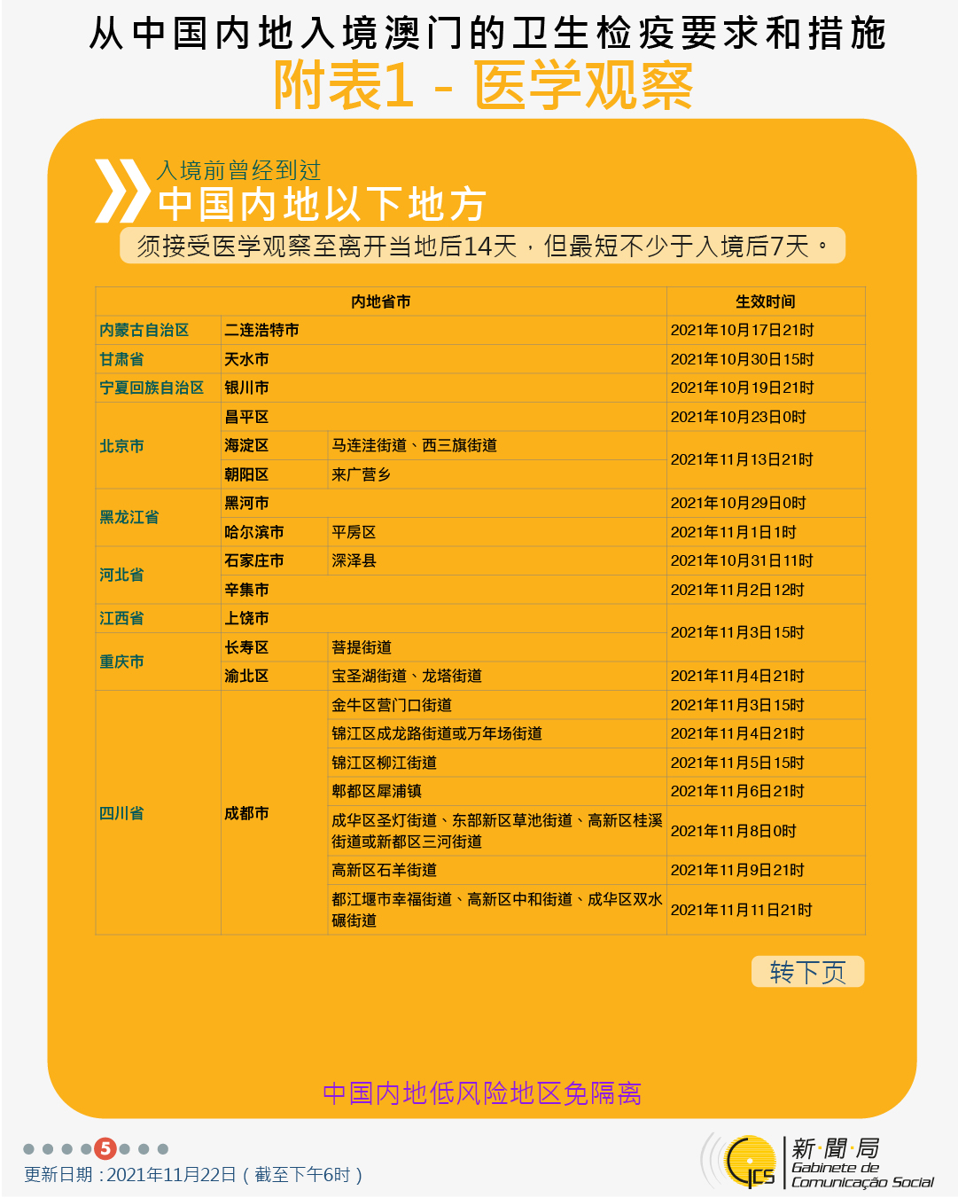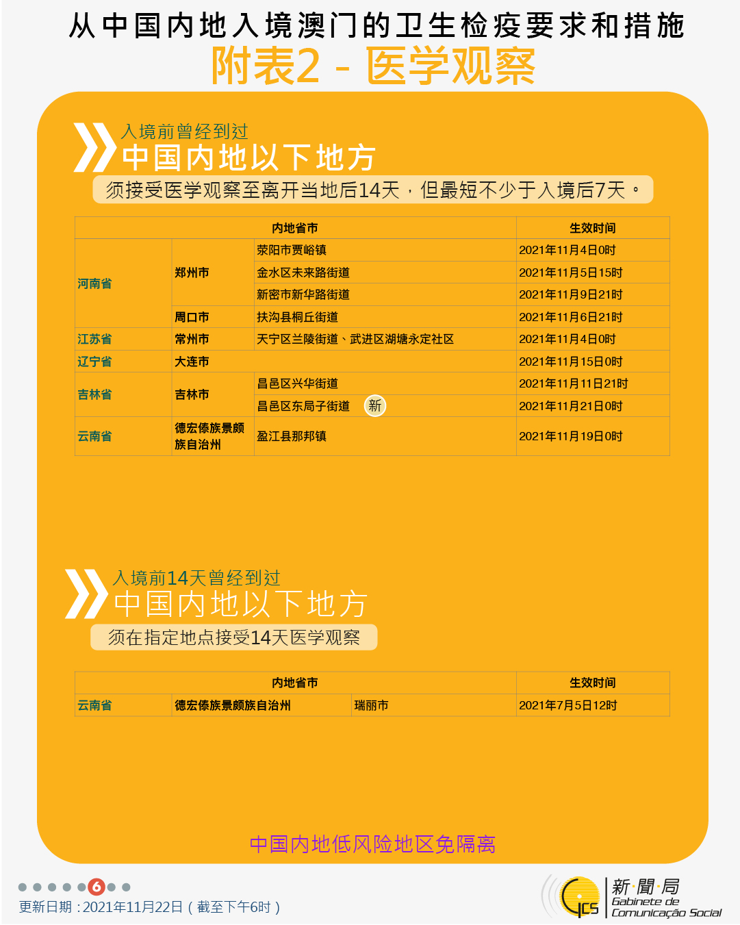 【圖文包】2021/11/22最新入境澳門衛生檢疫要求和措施