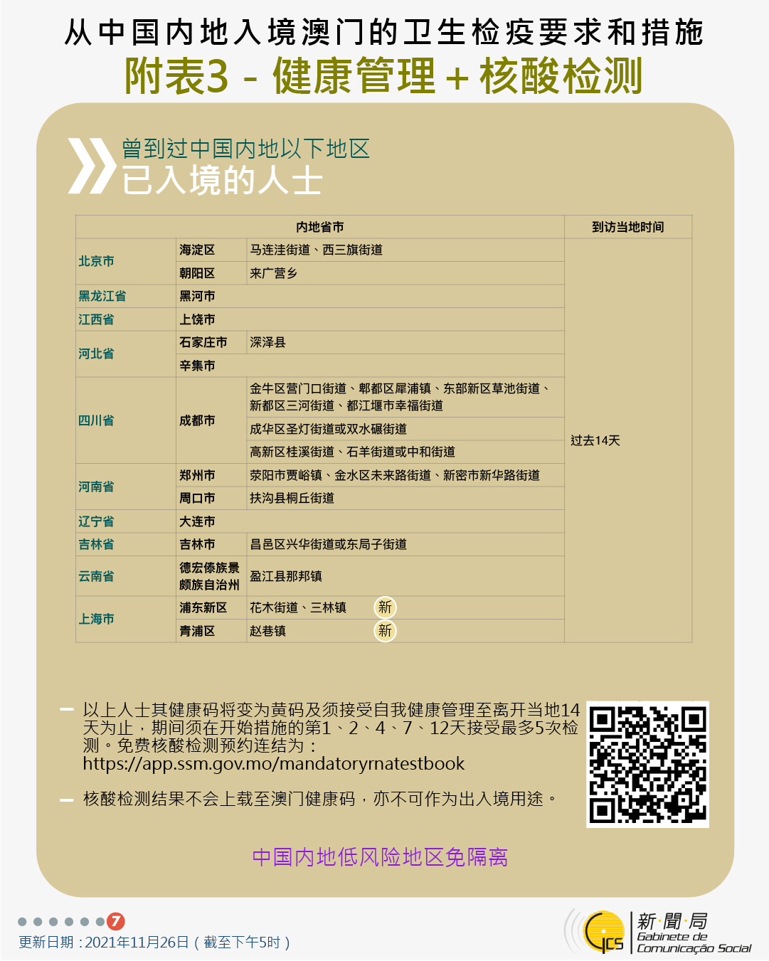 【圖文包】2021/11/26最新入境澳門衛生檢疫要求和措施