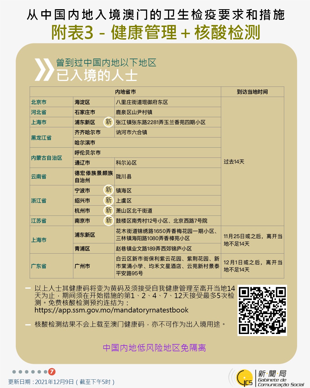【圖文包】2021/12/9最新入境澳門衛生檢疫要求和措施