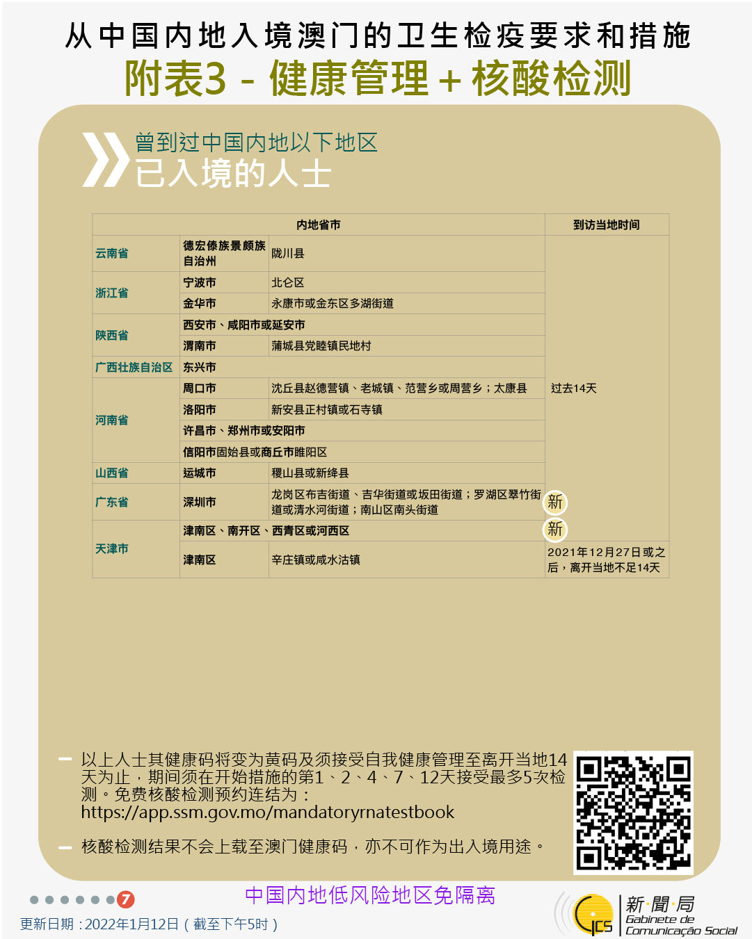 【圖文包】2022/1/12最新入境澳門衛生檢疫要求和措施