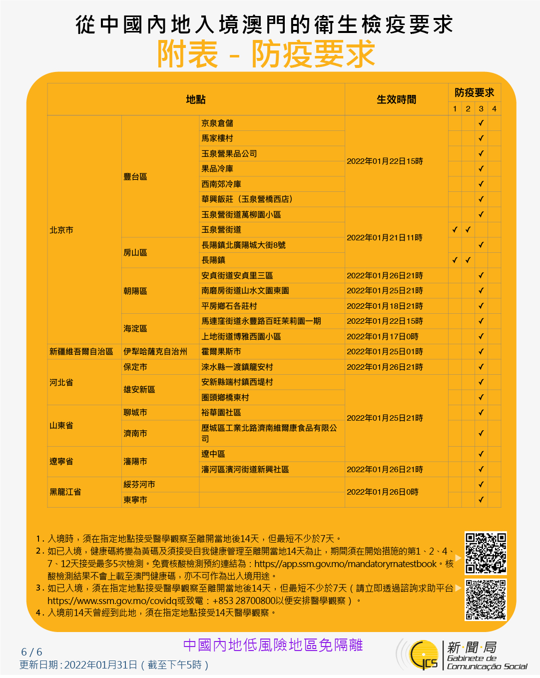 【圖文包】2022/1/31最新入境澳門衛生檢疫要求