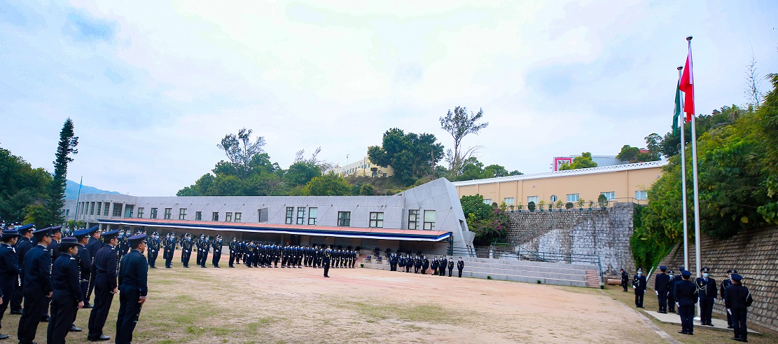 早上8時正,學校教職員工和學員在校內舉行升旗儀式,全體人員面向旗杆肅立致敬,國旗及區旗在國歌聲中徐徐升起。畢業典禮上,學員們精神煥發,昂首肅立,列隊整齊,保安司司長及嘉賓們向學員頒發畢業證書及各獎項,包括最佳學員獎、基礎訓練階段課程獎和體育獎等課程獎項,以肯定學員在課程中的不懈努力和優秀表現。