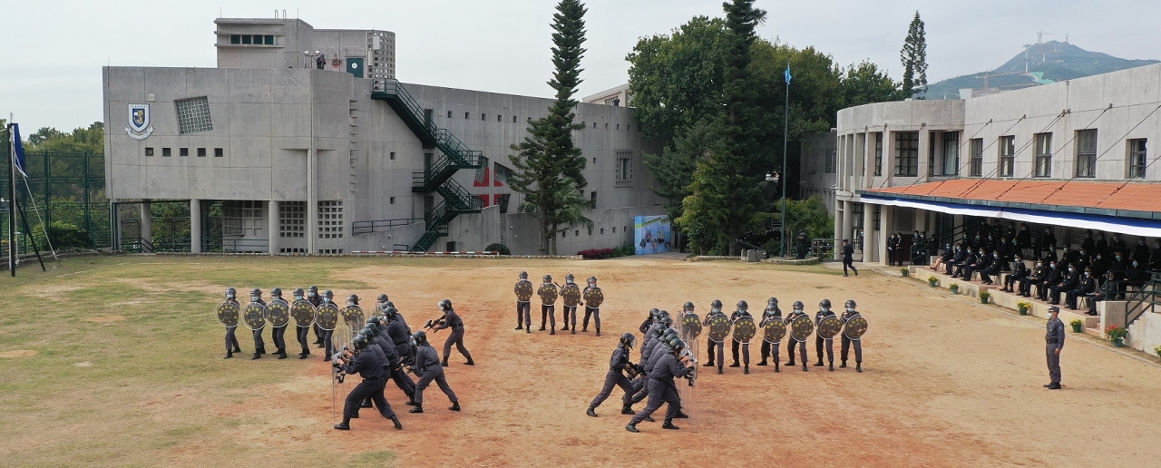 最後,學員們列隊行進向保安司司長及嘉賓致敬,並以一場精彩的花式槍及防暴陣式演示為畢業典禮拉下帷幕,當中高度展現了學員團結協作的精神,以及志氣高昂的良好風貌。