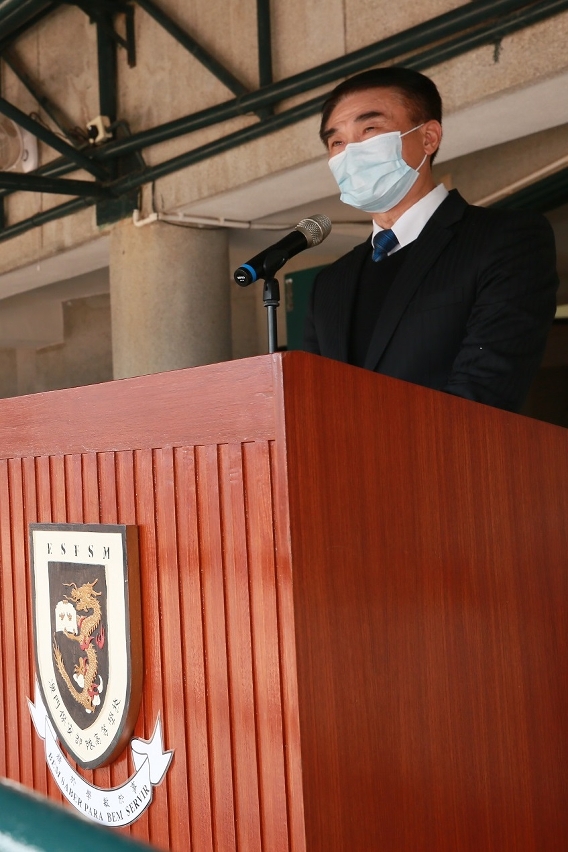 黃子暉校長在畢業典禮致辭時表示,學員要貫徹落實保安當局提出的各項警務理念,構建現代化警政模式,具備“奉公守法,廉潔忠誠”的堅定信念。另一方面,新冠肺炎疫情無阻培訓工作,課程從各方面給予學員充分培養,學員要毋忘初心,認真履行職責,面對困難時,不退縮,不放棄,勇於接受挑戰,展現澳門保安部隊及保安部門專業精幹的一面;並勉勵學員緊記“精於學‧敏於事"的校訓,持續進修,用知識充實自己,從而能更好履行職責,服務社會。