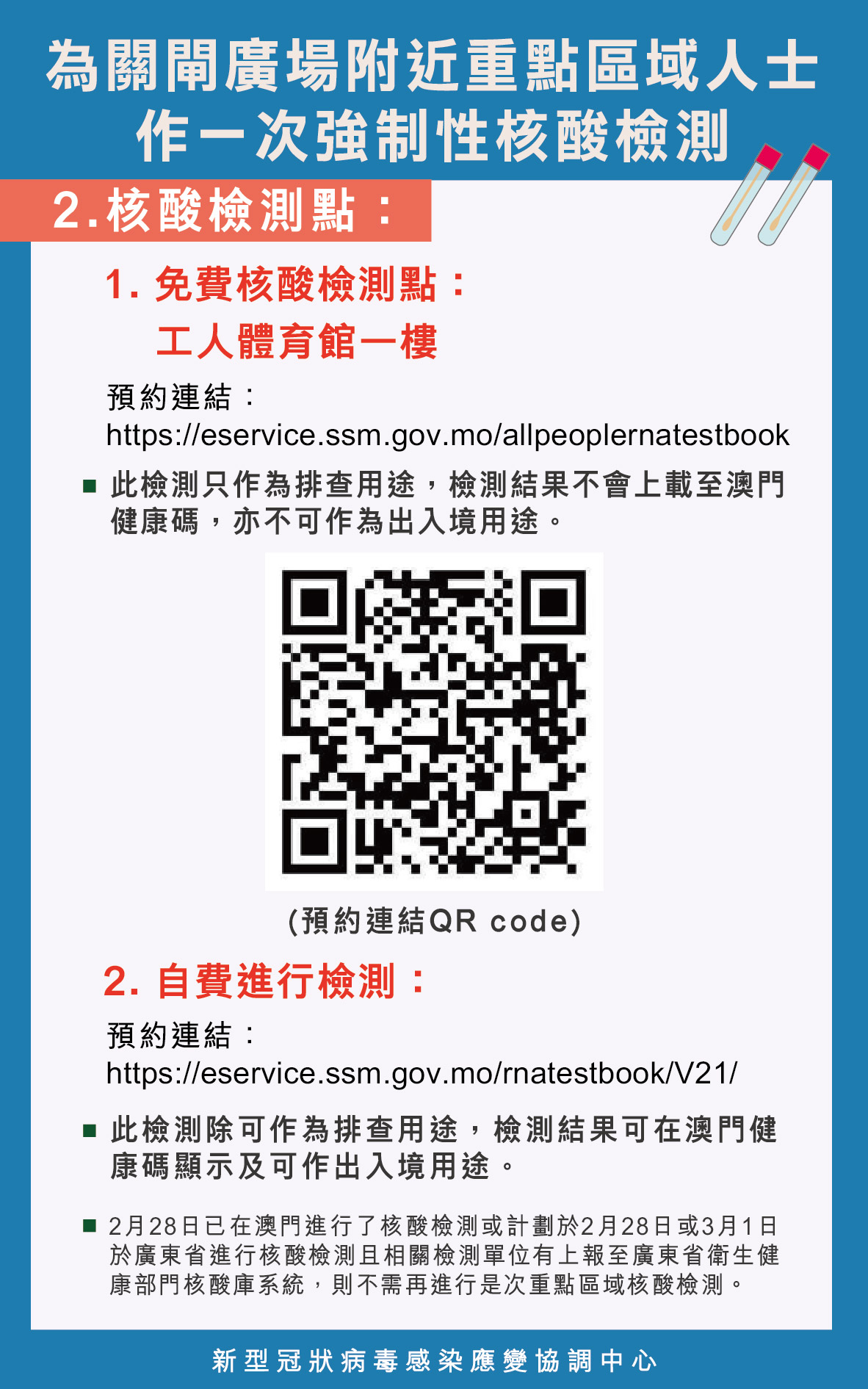 為關閘廣場附近重點區域人士作1次強制性核酸檢測 圖文包