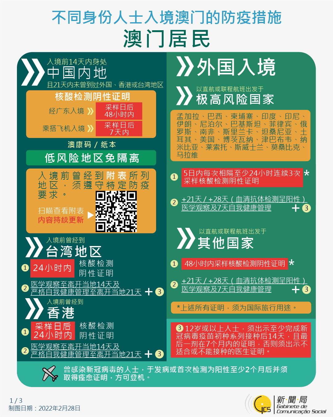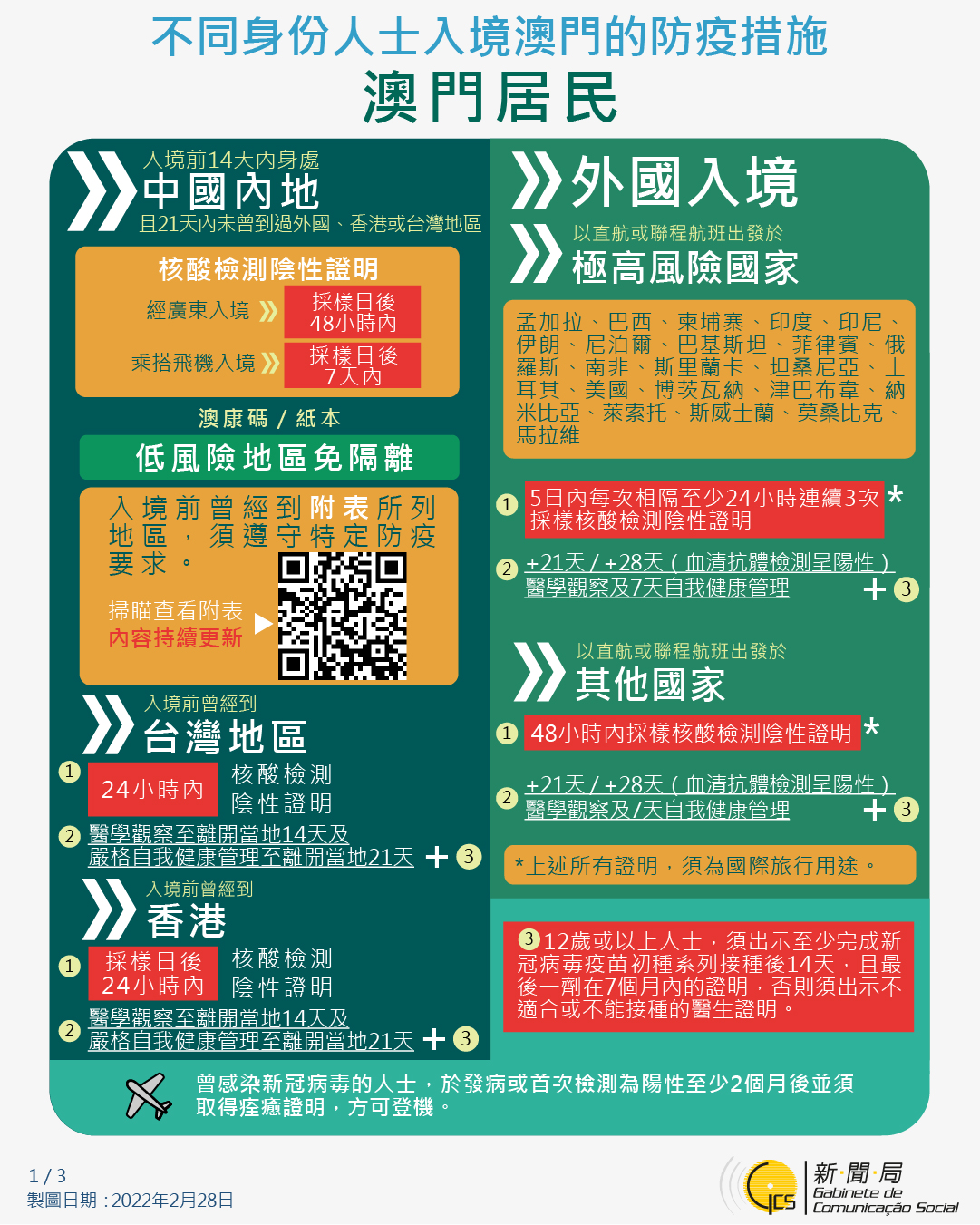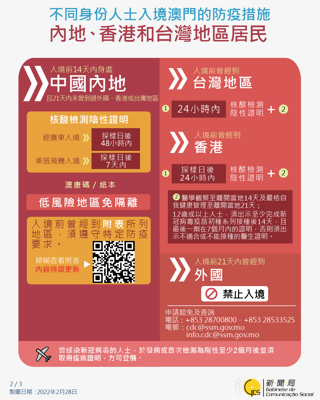 不同身份人士入境澳門的防疫措施