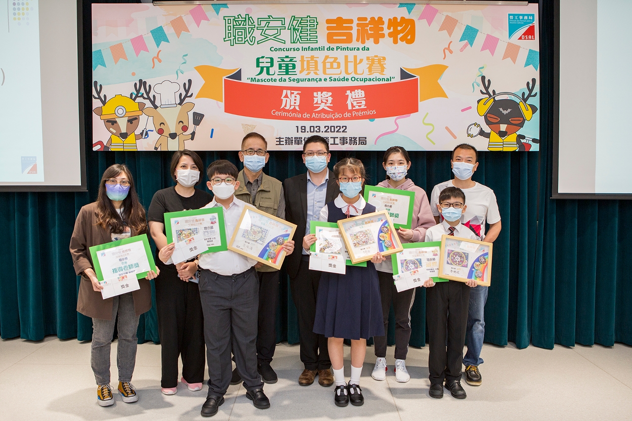 是次「職安健吉祥物」兒童填色比賽能達致向市民大眾宣揚職安健訊息之目的,得獎作品更有助加強職安健宣傳推廣工作的力度,共建職安健文化。比賽頒獎禮已於3月19日假勞工局舉行,出席人士包括得獎學生及指導老師、家長、校長及學校代表,並邀請勞工事務局副局長陳俊宇及比賽各評審主持頒獎。歡迎市民到比賽專題網頁https://www.dsal.gov.mo/zh_tw/standard/mascot_coloring_competition.html瀏覽優勝作品。勞工事務局將會運用有關優勝作品,透過學校展覽及不同宣傳物品,向市民大眾宣揚職安健文化。