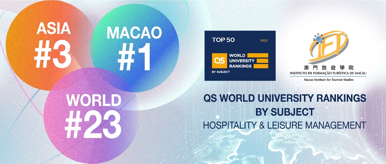 澳門旅遊學院在QS 2022年世界大學「款待及休閒管理」學科排名中榮獲全澳第一,同時躋身亞洲第三位及全球第二十三位。