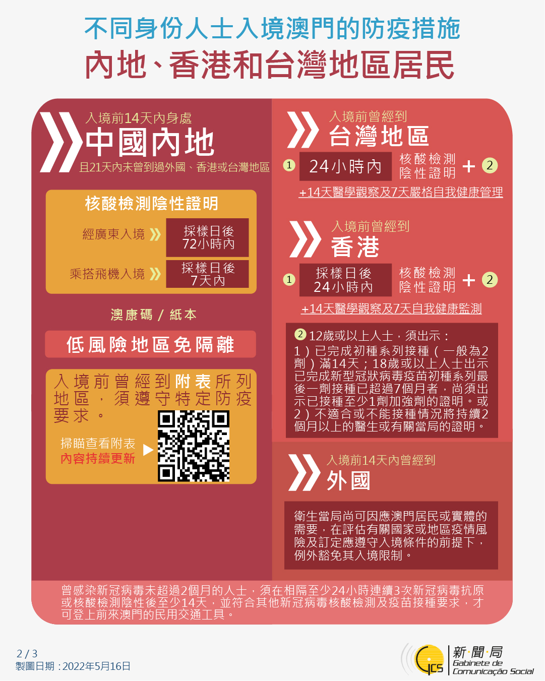 【圖文包】2022/5/21最新入境澳門的防疫措施