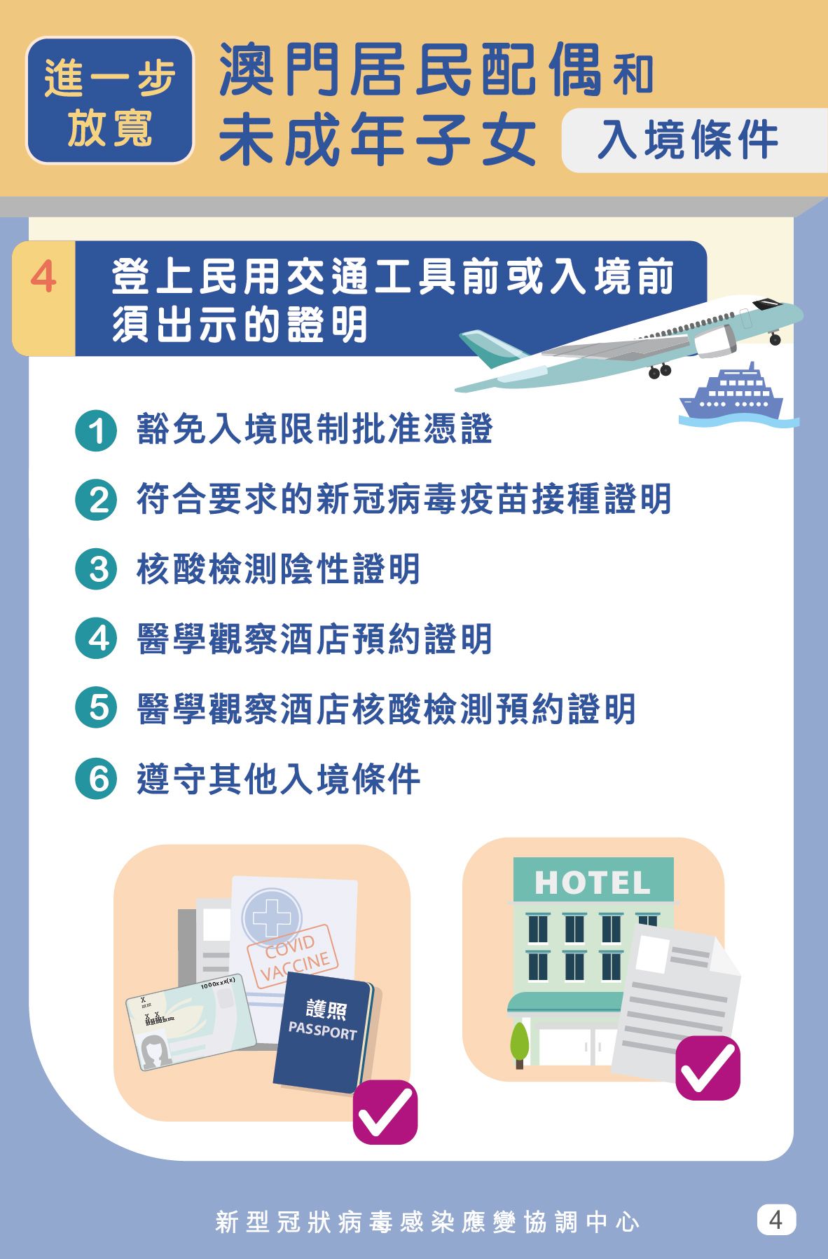 新型冠狀病毒感染應變協調中心(下稱應變協調中心)宣佈,經考慮澳門居民的實際需要及評估全球疫情風險和變化後,根據第64/2022號行政長官批示第三款的規定,自2022年5月30日起,未能按其他豁免入境限制計劃入境的澳門居民的外國籍配偶和未成年子女,可在取得衛生局事先批准並遵守其他入境條件的前提下入境澳門特別行政區。