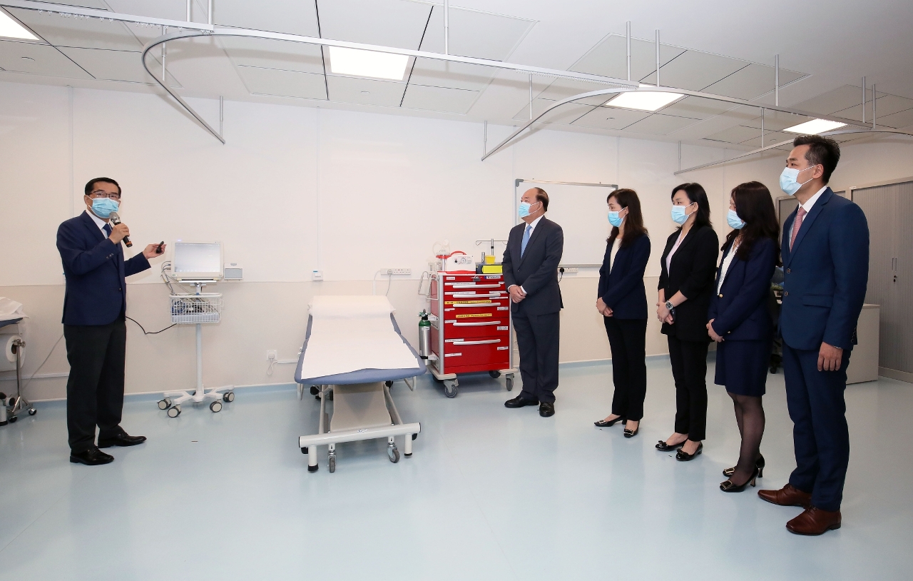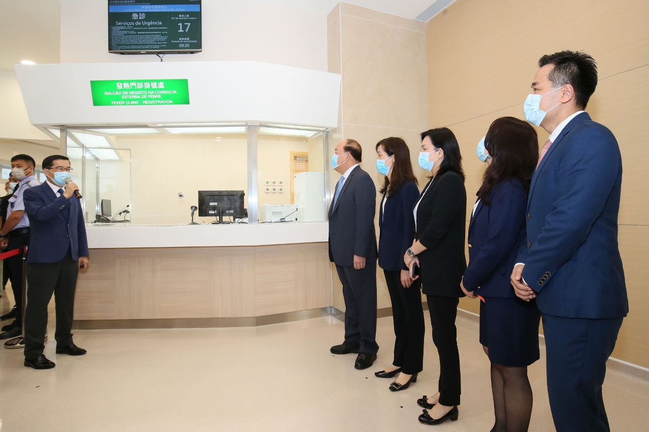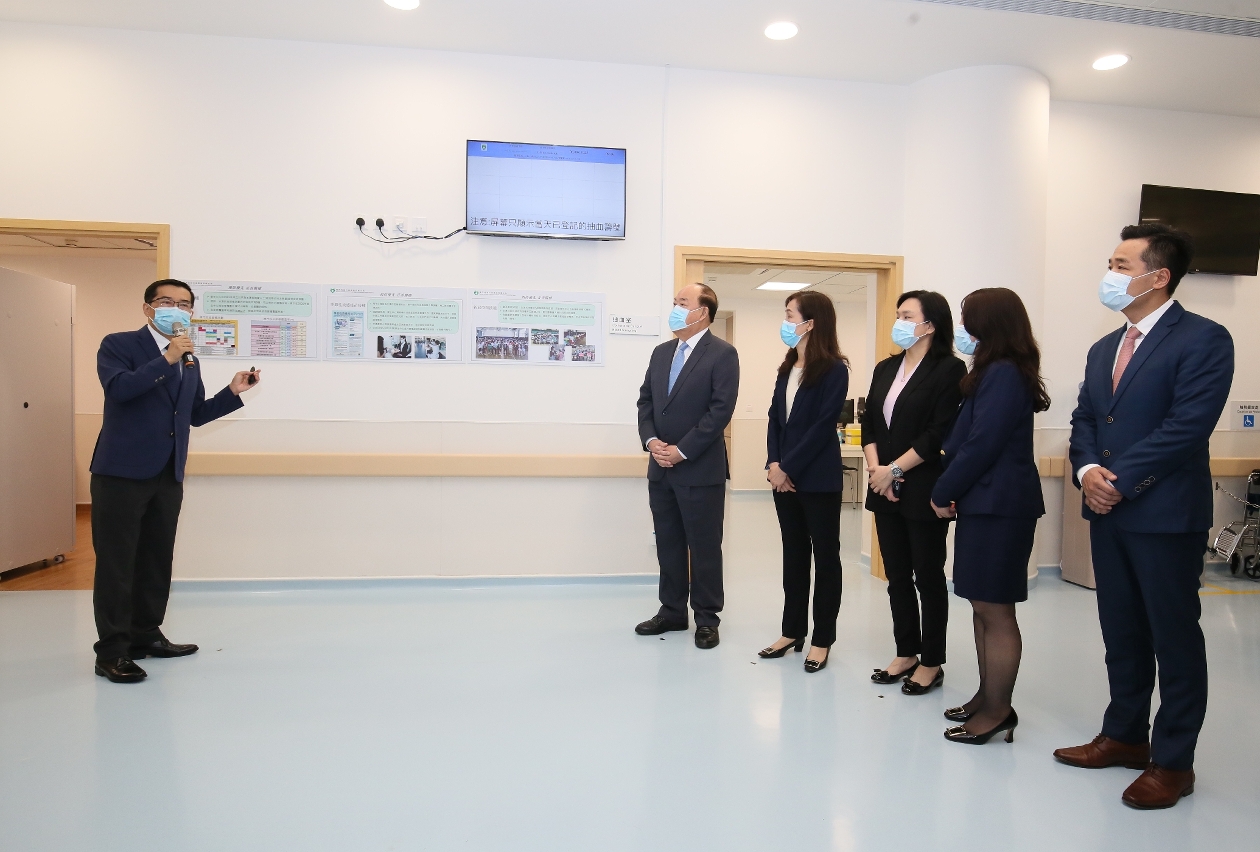 隨後,行政長官賀一誠在歐陽瑜司長、行政長官辦公室許麗芳主任、社會文化司司長辦公室何鈺珊主任和羅奕龍局長等陪同下,參觀了石排灣衛生中心內成人保健區、護理區以及特別門診區,期間聽取了鄭成業副局長的講解。