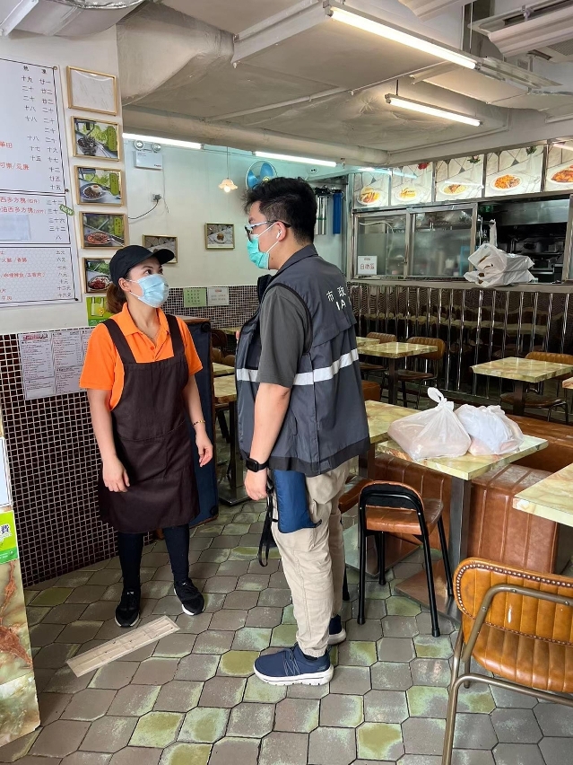 市政署派員提醒飲食場所只可提供外賣