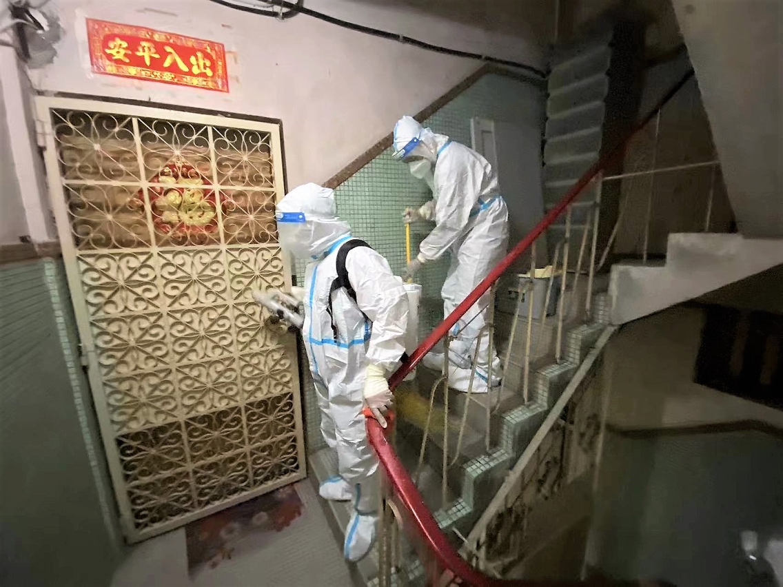 市政署對確診病例居所大廈加強清潔消毒