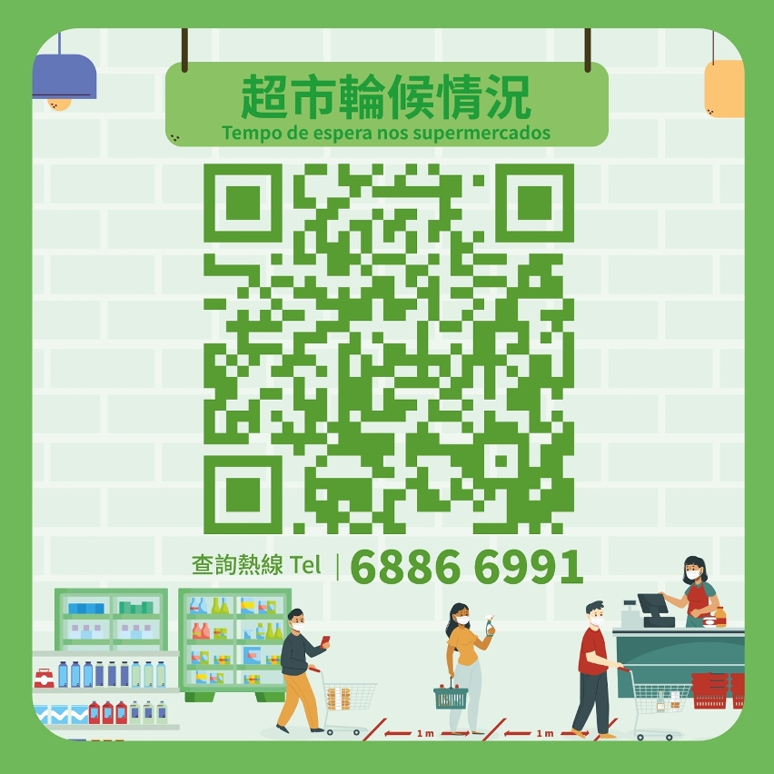 “臨時性的超市輪候情況查詢網頁”(www.dsedt.gov.mo/zh_TW/web/public/pg_sm_pc)每日早上9時至晚上10時每半小時更新數據。市民出門購物前可瀏覽網頁,如發現有超市人流過多,可選擇其他時間錯峰購物,或到同區其他店舖選購。