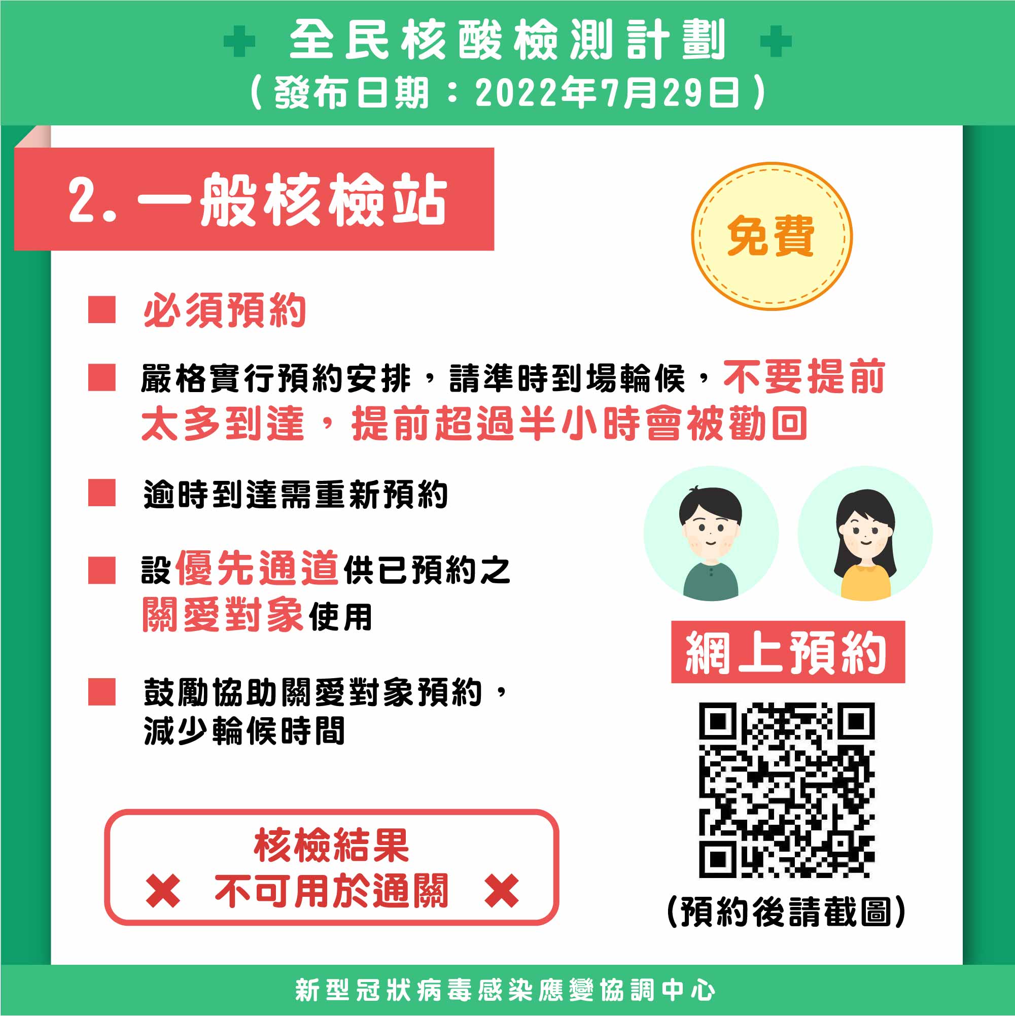 2022年7月30日早上8時至7月31日晚上7時全民核酸檢測站列表 :