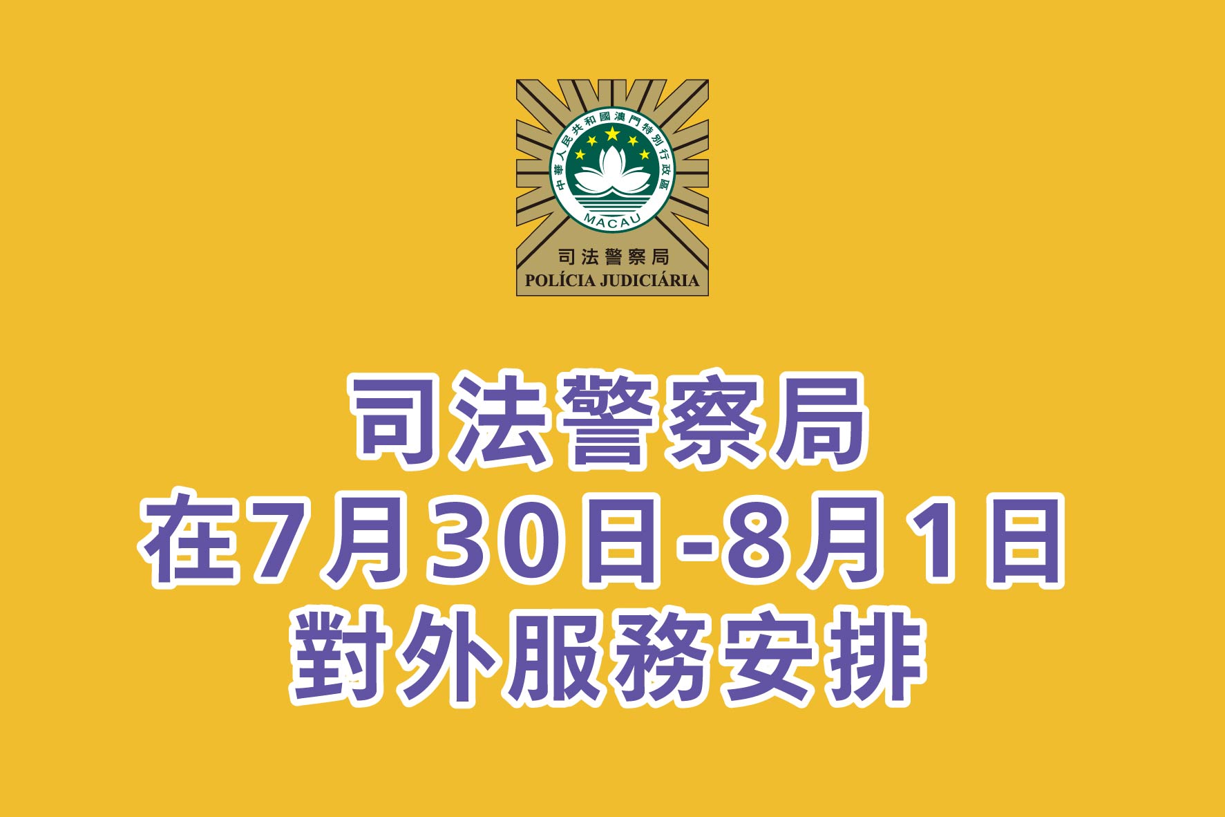 司警局全力配合特區政府抗疫部署,將調配警力支援疫情防控工作,並加強巡查及各項犯罪防控部署,確保社會安全穩定。對外服務方面,在2022年7月30至8月1日,司警局報案及緊急行動中心維持無間斷服務,報到室保持運作。而原定於上述期間到司警局協助調查(錄口供)或親子鑑定之預約將取消,更改時間於辦公日另作通知。如有疑問,可致電88001326查詢。