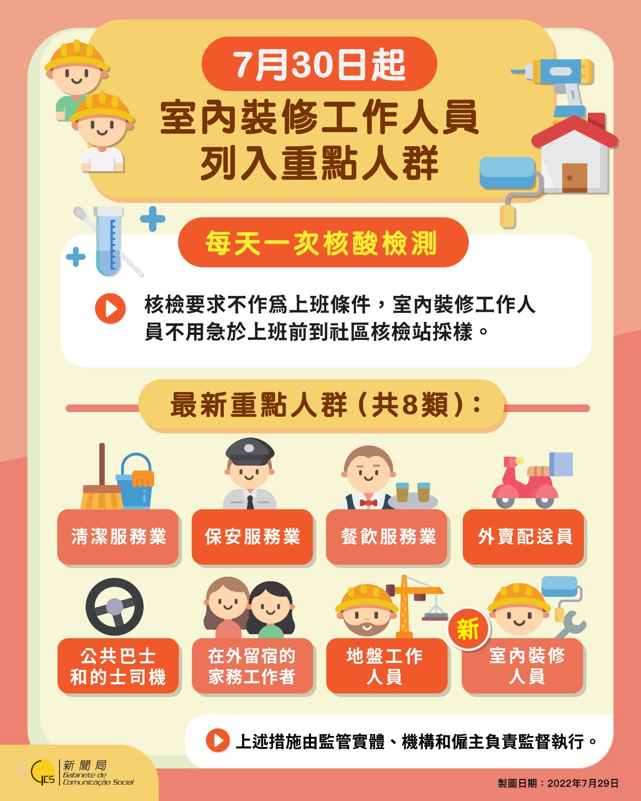 【圖文包】7月30日起室內裝修工作人員列人重點人群
