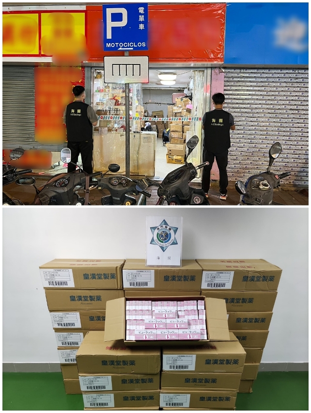 另外,海關根據舉報,經調查後鎖定位於關閘附近一涉水客活動店舖,於8月4日下午採取突擊行動,在目標店舖內緝獲1,440盒藥物,總價值約7萬澳門元。經初步調查,上述藥物屬受准照制度規管,1名38歲的女性本澳居民為店舖現場負責人,由於其未能出示相關的進口文件及合法來源證明,海關根據《對外貿易法》之相關規定作出起訴,一經處罰,最高可被科處10萬澳門元罰款,而被查獲的貨物亦會宣告歸澳門特別行政區所有。