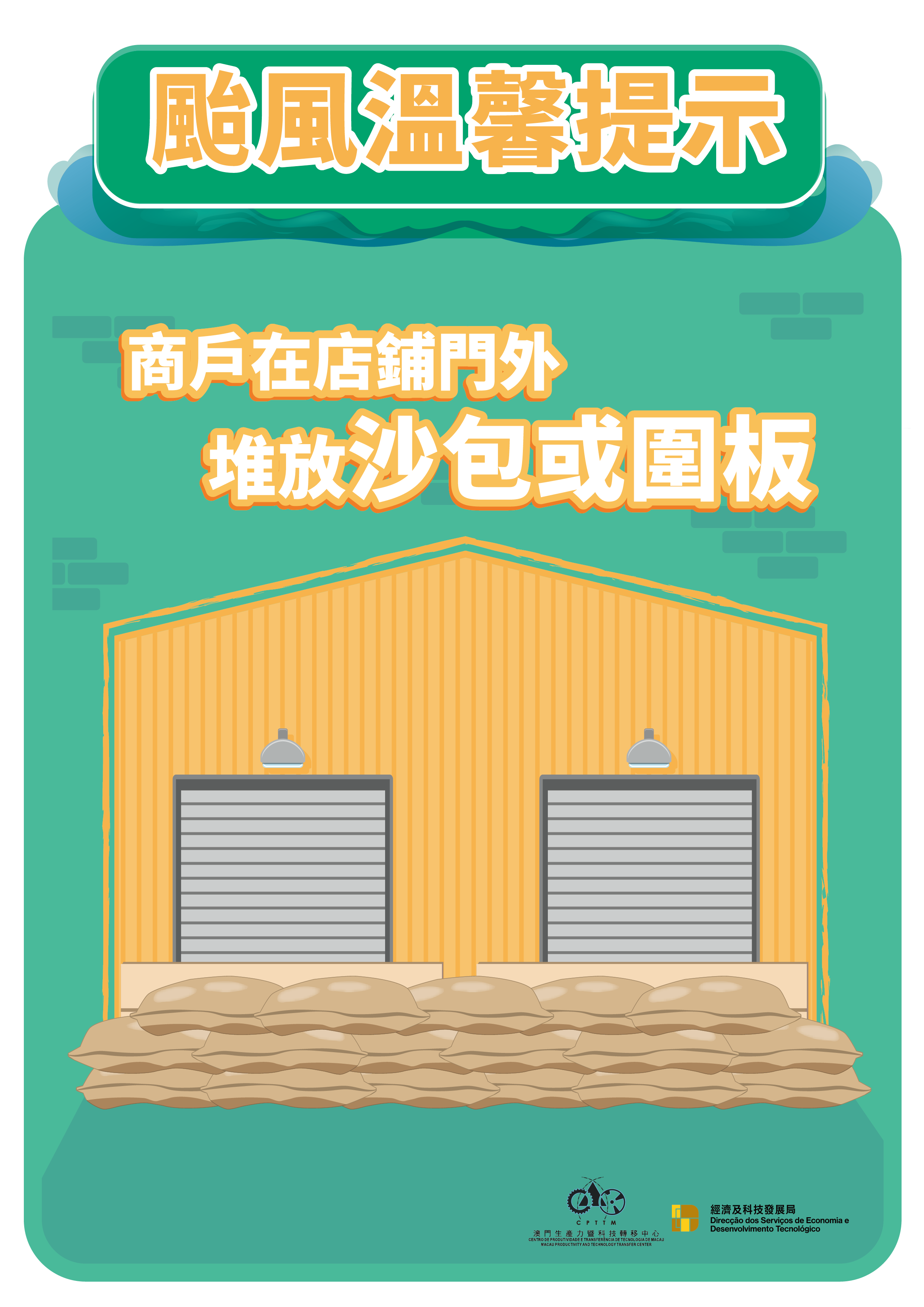 經濟及科技發展局與澳門生產力暨科技轉移中心提醒企業,特別位處低窪地區的商戶,應做好防風防洪防浸的準備工作及預防措施,以免造成貨物及設備損失。同時,商戶應密切留意氣象局發佈的最新天氣情況。