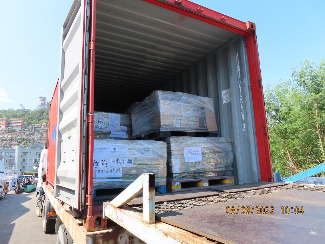 環保局所委託的承判公司將收集到的廢舊電池進行預處理後,分別在2018年12月、2021年6月,以及今年9月合共將兩批一次性電池(約57,750公斤)和一批鉛酸電池(約43,900公斤)安排在澳門裝箱入櫃,並按照《巴塞爾公約》進行有關越境轉移程序及工作,透過海運經香港港口轉運到日本或韓國作後續的再生及資源化處理,餘下的廢舊電池則暫存在承判公司的廠房內,留待下次安排轉運。