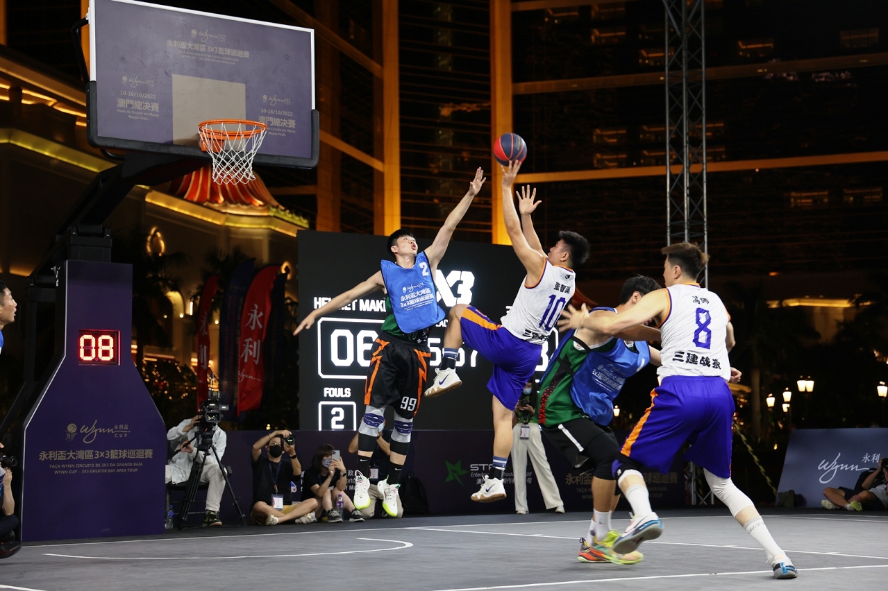 《永利盃大灣區3x3籃球巡迴賽》自本年6月上旬走進大灣區進行多個分站預賽,各分站前八名隊伍於總決賽匯師澳門角逐殊榮,強強對戰爭奪豐富獎金。賽事自10月10日起一連七天於本澳著名景點,媽閣廟前地、大三巴牌坊、塔石廣場、永利皇宮上演精彩對決,讓各參賽隊伍在比賽的同時,感受到澳門世遺景點的魅力,也為觀賽的旅客及市民呈現出街頭籃球的活力和激情。