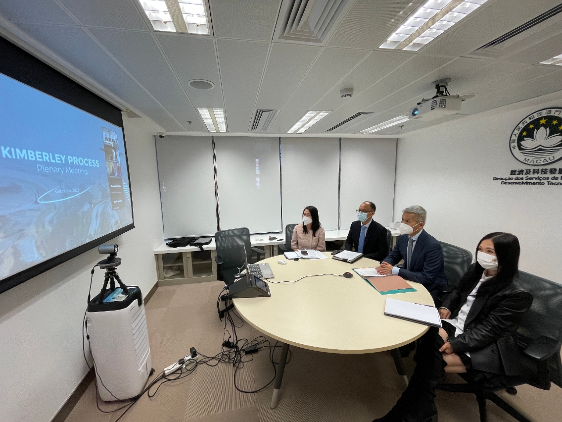 “金伯利進程2022年全體大會”於2022年11月1至4日在博茨瓦納哈博羅內以線上線下結合方式舉行,經濟及科技發展局戴建業局長作為中國代表團澳門特別行政區政府代表,以視像形式出席了會議。會議期間,金伯利進程的成員及觀察員聽取了各個工作組過去一年的工作匯報、討論進程關注的議題以及訂立未來的工作方向等。