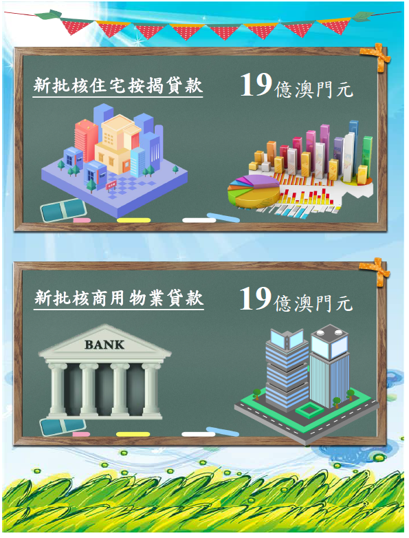 未償還商用物業貸款總額達1,592.8億澳門元,按月比較大致持平,與一年前比較則增加0.8%;其中,居民部分佔93.2%。與一個月前比較,居民部分的未償還商用物業貸款減少0.2%,而非居民部分則增加2.2%。