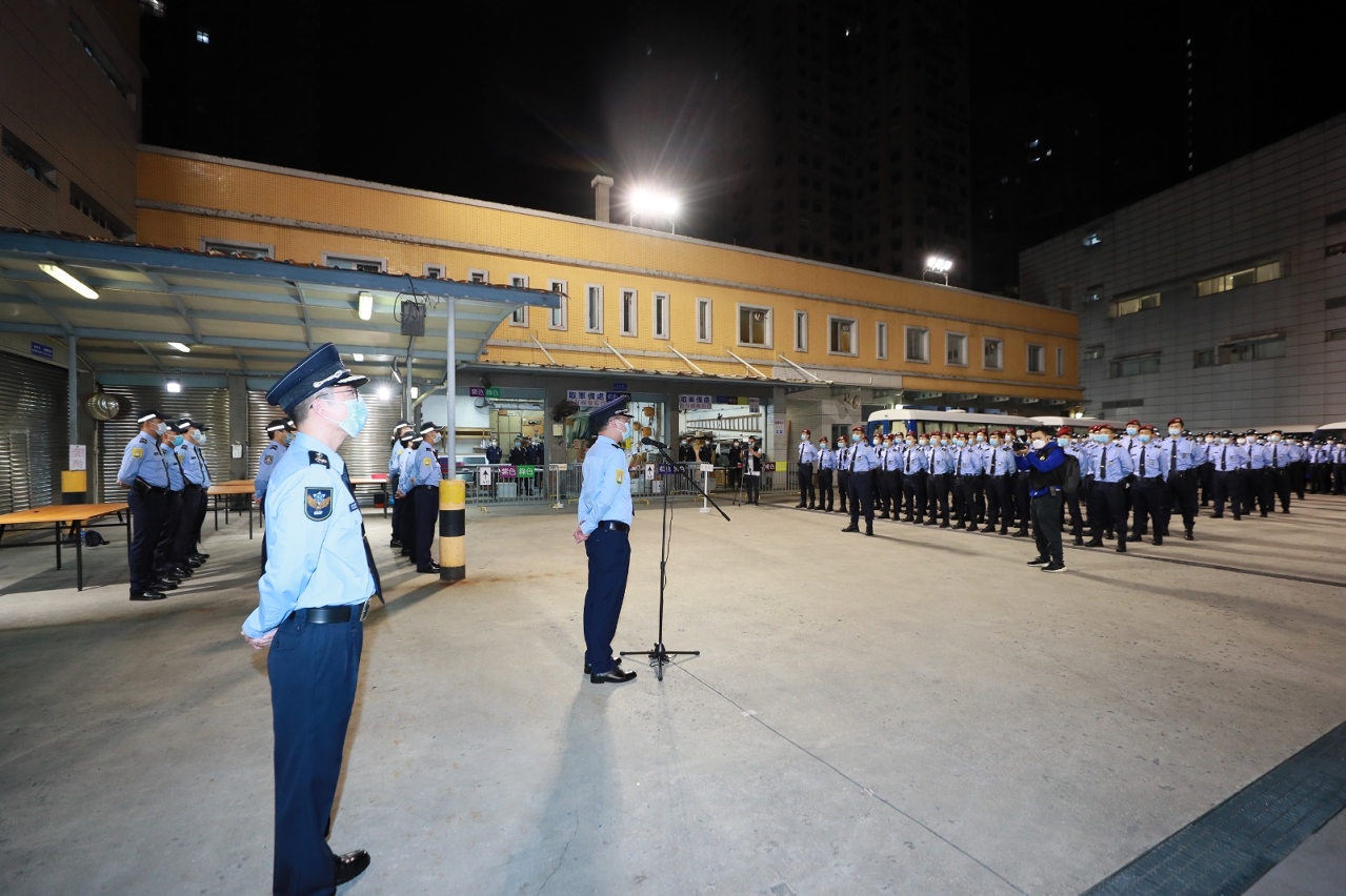 今日清晨,賽事安保工作的全體警務人員進行列隊,聽取工作安排後,隨即前往各點執行工作,封閉賽道及進行安全監察;特警隊警犬組於賽道及看台等範圍排查可疑物品,確保整個賽道和周邊區域的安全。