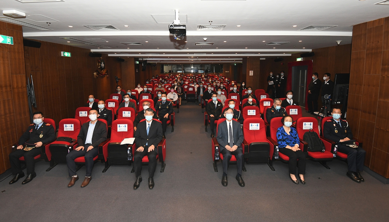 警察總局局長梁文昌聯同民防架構成員代表、社區民防聯絡機制代表及民防志願者於治安警察局出入境事務大樓一樓禮堂出席是次專題講座,民防架構及社區民防聯絡機制成員同時設立了21個線上直播點,現場及線上參與人數逾500人。