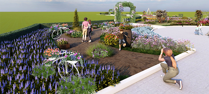 本年冬季花卉展主題花“瑪格麗特”品種繁多,色彩繽紛,整個展覽將結合漫遊歐式花園為環境敘事的構想,適逢明年農曆年為兔年,參觀者可以在層層疊疊的花叢中,發現一連串與花園及兔子相關的趣事。由入口至中心的佈局,依次為自然式花卉景觀,過渡式花壇,最終到達規整對稱的莊園迷宮,讓遊覽路線得以延長,園趣亦得以大大提昇。而觀賞的層次,由入口之神秘,轉為發現、開闊至委婉地進入迷宮繼續探尋,這種不斷轉換的秩序使遊人的體驗逐層提昇。園藝設計師在花展場內不同角落埋下各式各樣老少咸宜的“寶藏”:如各種兔子造型綠雕、打卡點、歐式茶座等,讓市民在遊覽過程中發掘各式趣味和滿溢的節日氣氛。