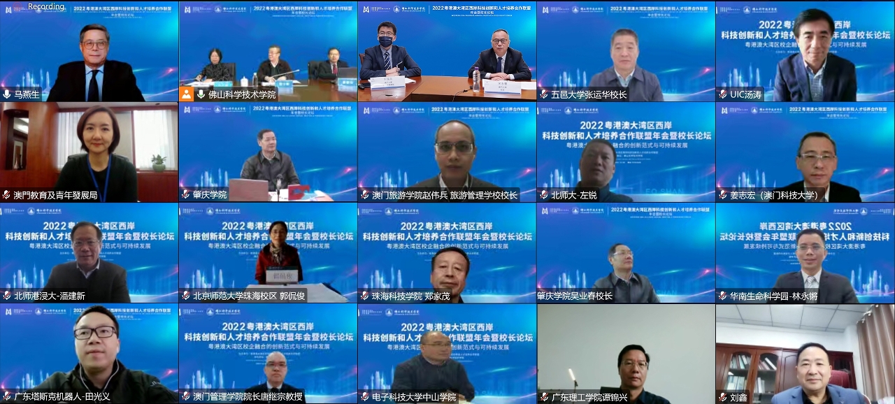 第四屆粵港澳大灣區西岸科技創新和人才培養合作聯盟理事會、年會暨校長論壇於線上召開。是次論壇的主題爲“粵港澳大灣區校企融合的創新範式與可持續發展”,聯盟成員單位及支持單位於線上共聚一堂,回顧過去一年的工作成果並商討未來一年的工作計劃,各成員單位代表踴躍發言,為大灣區產學研創新發展建言獻策,貢獻西岸智慧、西岸力量。