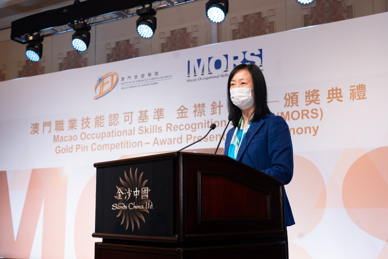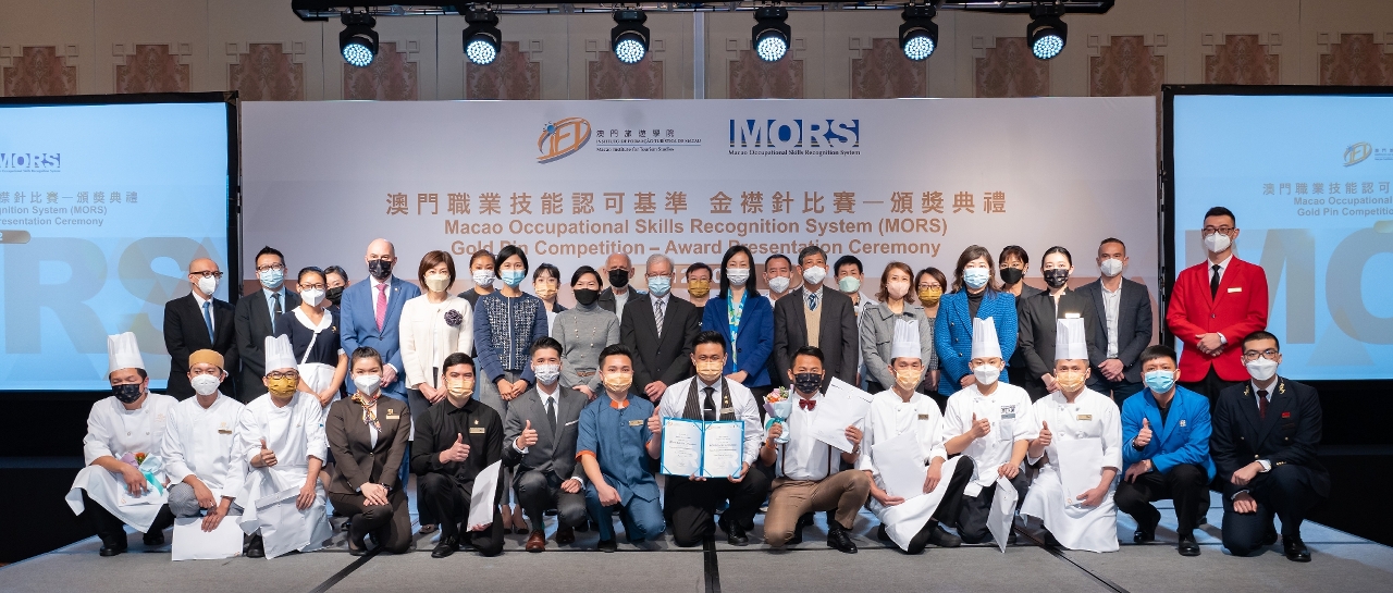 澳門旅遊學院於2022年12月7日舉行“澳門職業技能認可基準(MORS)”2022金襟針大賽頒獎典禮,由澳門勞工事務局黃志雄局長、職業培訓廳張瑋廳長、澳門旅遊局組織計劃及發展廳馬裕玲廳長、澳門酒店協會會長王淑欣會長、澳門酒店旅業職工會李寶來會長、金沙中國有限公司度假村營運高級副總裁麥萃賢先生擔任頒獎嘉賓。