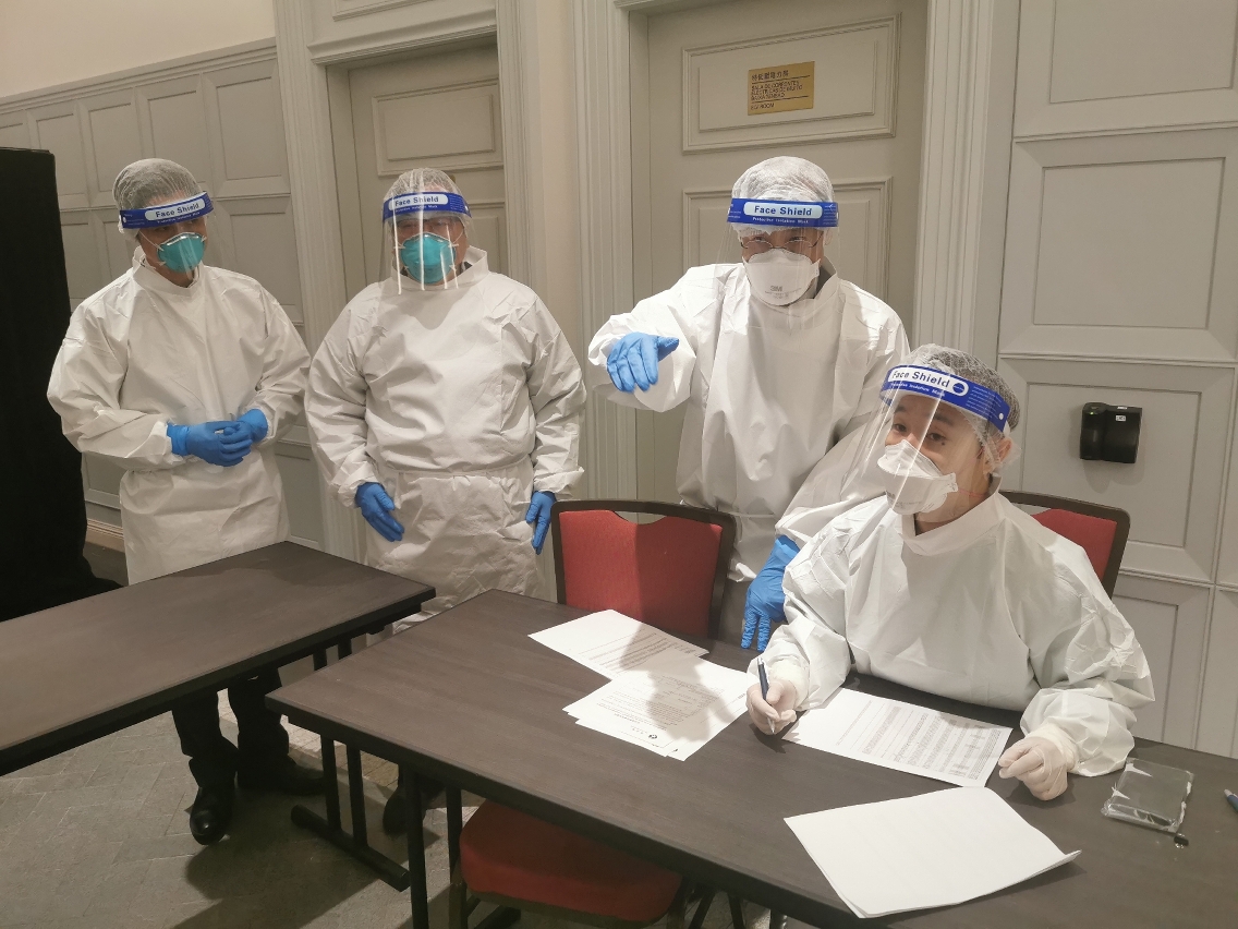 衛生局仁伯爵綜合醫院郭昌宇院長、彭向強醫務主任及戴華浩醫務主任今(14)日上午到喜來登酒店現場巡視瞭解情況,並與駐場醫護人員及酒店員工進行交流及給予指導意見。現場秩序良好,酒店住客按住房樓層分批有序辦理退房登記。另考慮到今(14)日的退房人數較多,為免大量感染者滯留於酒店門外,旅遊局已安排接駁專車將感染者由酒店送往澳門區及氹仔區。