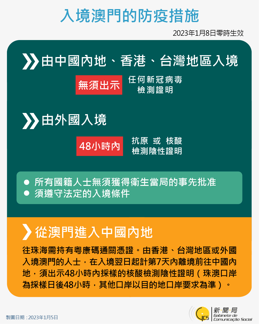 【圖文包】最新入境澳門的防疫措施 (2023/1/5)