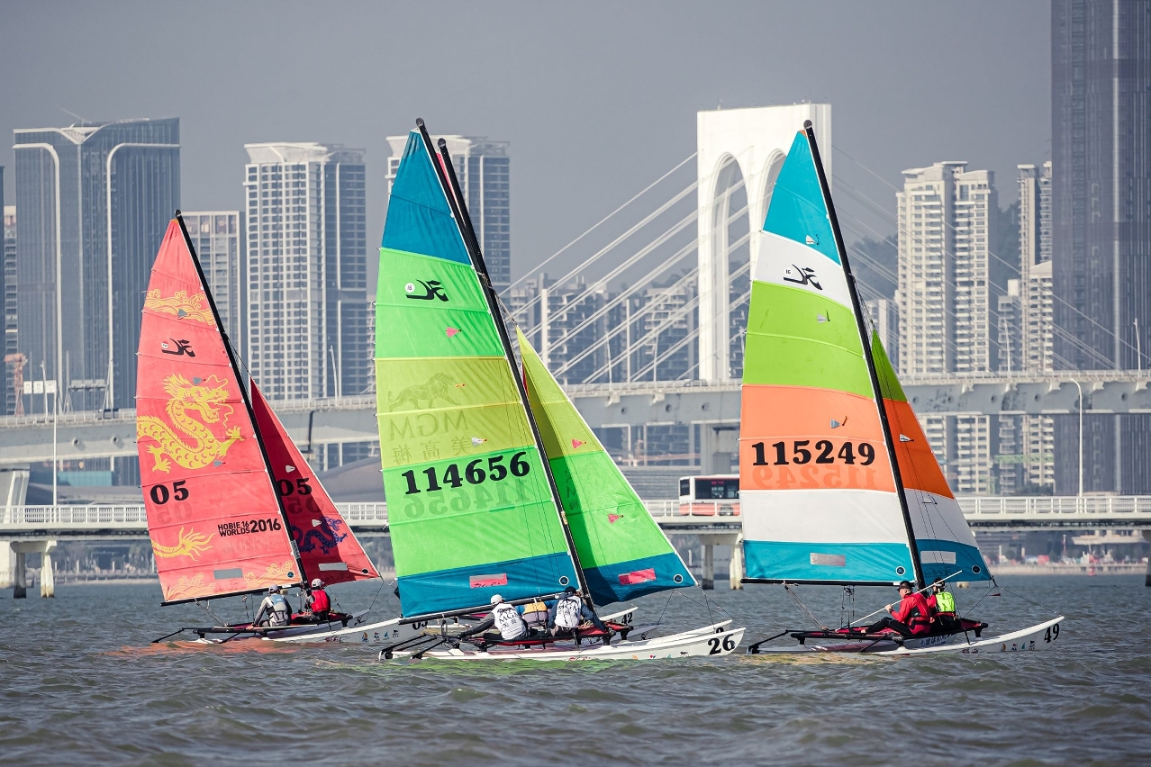 「2023美高梅澳門國際帆船賽」今日(6日)進行第二天賽事,經過多輪激烈比拼,木屋燒烤隊、廣州南沙隊、Cat Fever分別在「澳門盃國際帆船賽」博納多First 40.7統一設計組、「粵港澳大灣區盃帆船賽」IRC組及「雙體帆船國際邀請賽」Hobie 16統一設計組獲得單日賽事冠軍。