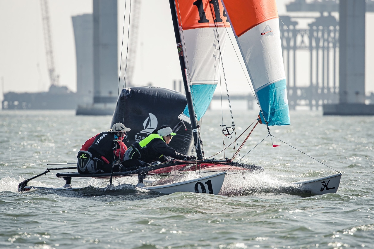 「雙體帆船國際邀請賽」Hobie 16統一設計組共完成四輪競賽,Cat Fever、浪客航海和吻汐互有勝負,然而浪客航海在第二輪發揮未如理想,屈居第三,Cat Fever成為單日賽事冠軍,吻汐排第二。總結兩天成績,Cat Fever仍穩坐第一,其次是浪客航海和吻汐。各項賽事將於明日(7日)至8日繼續進行。