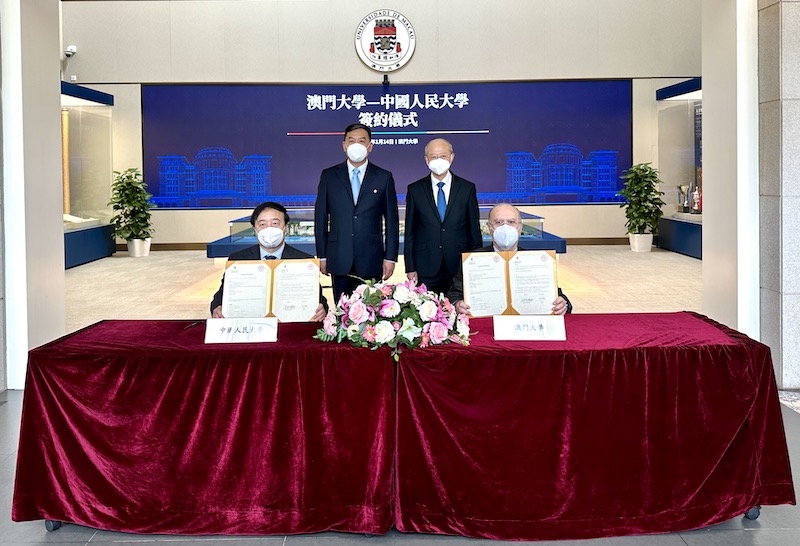 澳門大學與中國人民大學今(14)日簽署《教育和科學合作備忘錄》,同場亦舉行了“國際文化交流學術聯盟”及“世界人文社會科學高校聯盟” 授牌儀式。兩校冀在未來進一步深化交流與合作,充分整合雙方資源與優勢,攜手推動京澳兩地高等教育發展,為國際文化交流以及世界人文社科發展貢獻力量。