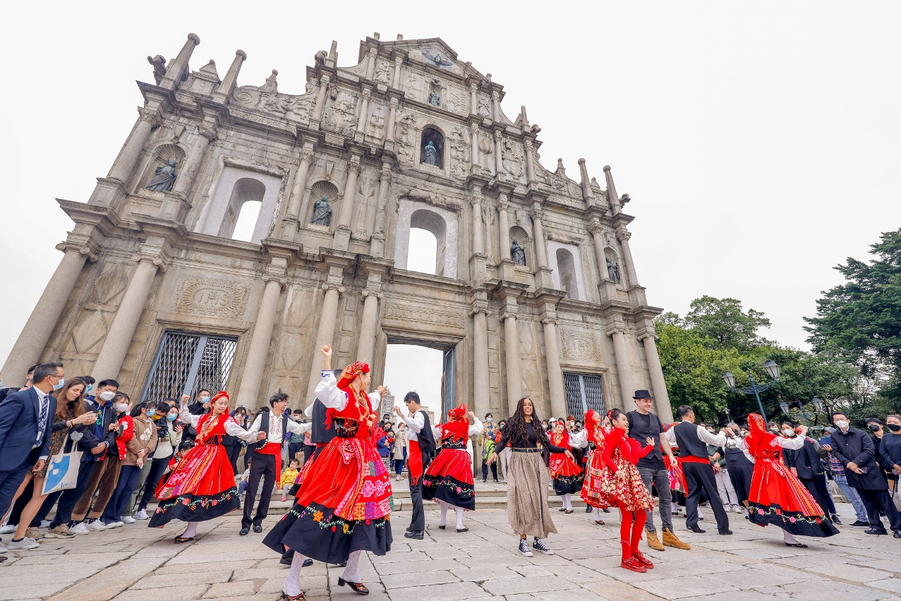 港澳免核檢通關後迎來首個香港旅遊業界考察團,約40位香港旅遊業界領袖於今(15日)早乘船抵澳展開兩天緊密行程,同行亦有14位香港媒體代表。今(15日)下午,澳門特別行政區政府經濟財政司司長李偉農聯同旅遊局局長文綺華等領導在大三巴牌坊與考察團合照。考察團一行於世遺景點感受澳門的中葡文化藝術表演:欣賞澳門原創歌曲“愛上澳門"、“澳門就是這樣”及 葡萄牙土風舞蹈,澳門旅遊吉祥物“麥麥”亦於現場助慶,還有澳門中樂團在玫瑰堂的精彩演奏,及後一行到“澳品薈”及“中國與葡語國家商貿合作服務平台展示館”等地方參觀。澳門經濟及科技發展局局長戴建業、澳門文化局局長梁惠敏及澳門貿易投資促進局代主席余雨生等到場接待並與考察團成員交流。