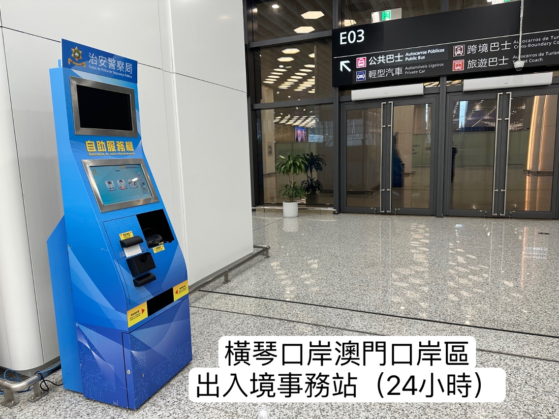 為配合特區政府電子政務發展,治安警察局及澳門保安部隊事務局共同研發自助服務機,並於2018年6月推出。目前,在澳門政府綜合服務大樓、離島政府綜合服務中心、北安出入境事務大樓(24小時)、關閘出入境事務站、新口岸警司處分站(24小時)及路環警司處澳門大學分站(24小時)六個地點設置有關自助服務機。