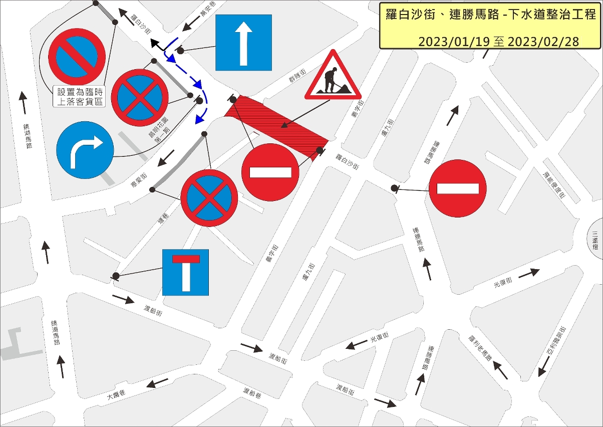 市政署現正進行羅白沙街至連勝馬路加建排洪雨水管道工程,由於工程進度較預期理想,工程第一階段第二部分將提前於1月19日展開,並實施相應的臨時交通安排(詳見附表)。