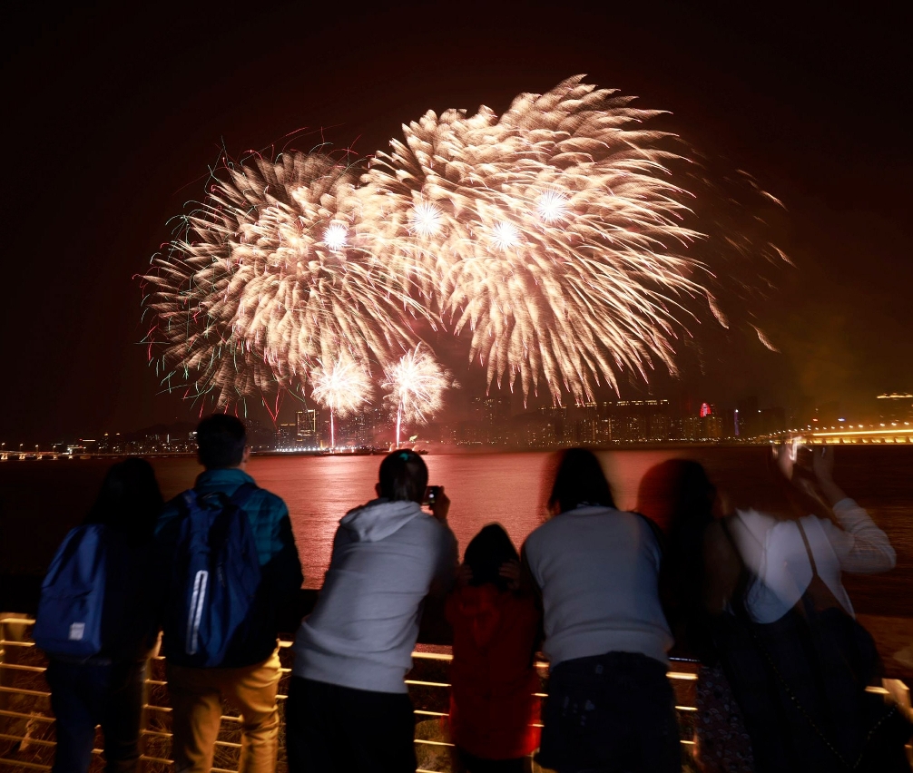 “歲歲平安—絢麗澳門煙花匯演”將於明晚9時45分及元宵佳節(2月5日)晚上9時正在澳門旅遊塔對出海面盛放第二及第三場煙花表演,15分鐘的煙花表演呈現笑臉圖案、變色花束、滿天星和金柳銀柳等特色造型煙花效果,共慶 “人日”和元宵佳節。