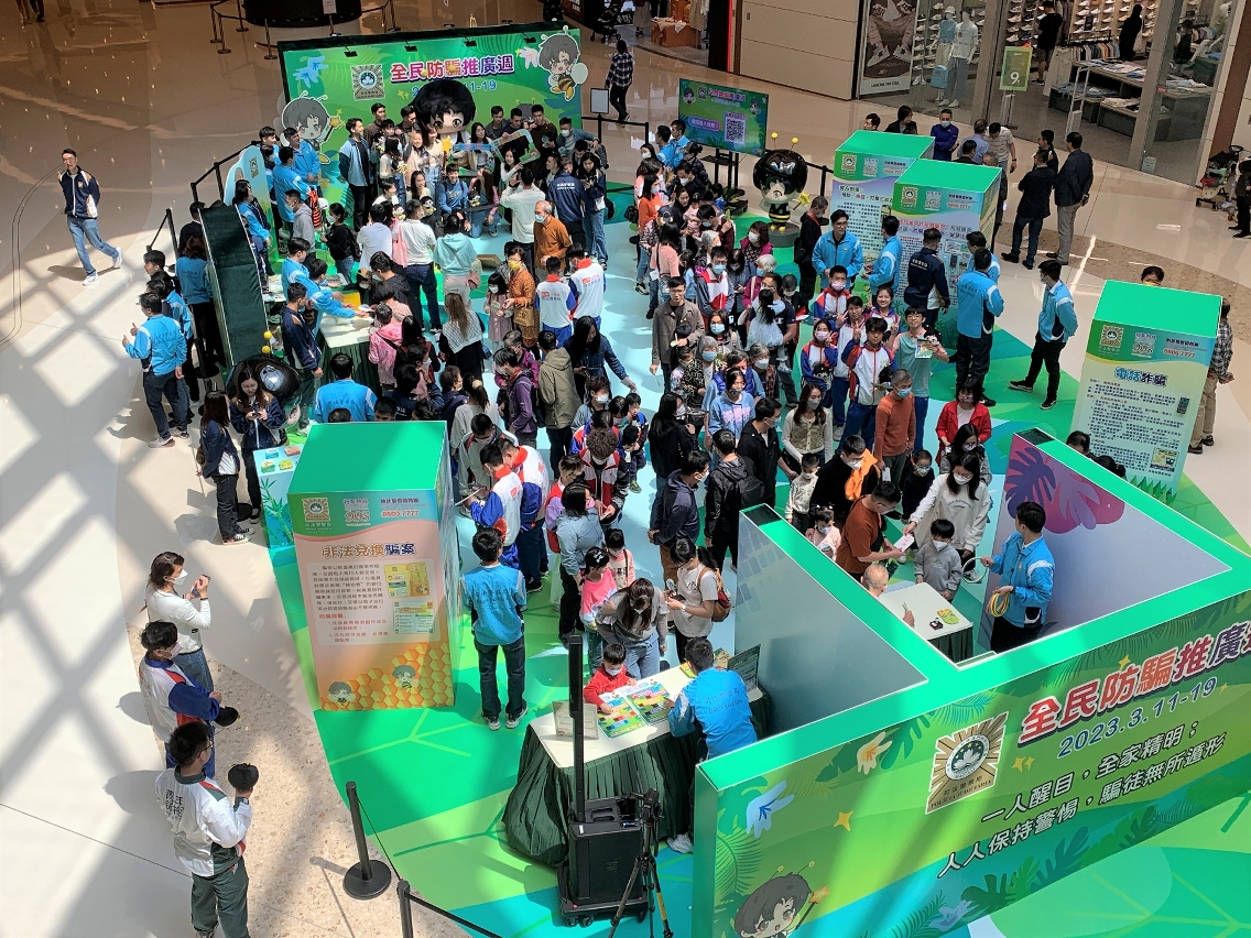 “全民防騙推廣週”活動設有教育展板、模擬騙案和匯款提示的互動體驗活動、防罪攤位遊戲,場內滾動播放最新防騙宣傳短片,向市民介紹預防電信詐騙的防罪資訊,活動大使“防騙小精靈”還親臨現場與市民拍照互動。啟動禮當日吸引不少居民帶同家人參與,場面熱鬧歡樂,大眾無分長幼,從中學習最新防罪資訊和瞭解到司警局應對騙案的工作情況,有效建立和強化防騙觀念。