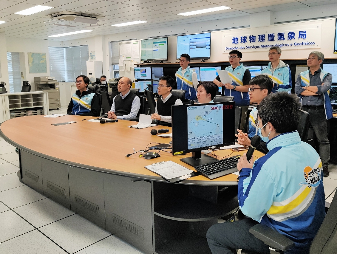 為持續提升對熱帶氣旋和風暴潮的預報預警及應急處理能力,地球物理暨氣象局日前進行了內部熱帶氣旋演習,以檢視和優化各相關工作程序、測試系統運作及強化各工作崗位的溝通與協調。演習結束後,局方進行了檢討會議,透過聽取不同崗位之工作人員的回饋意見,檢視和完善不足之處,制定優化方案,從而持續強化各崗位的協作機制,提升應急處理能力。