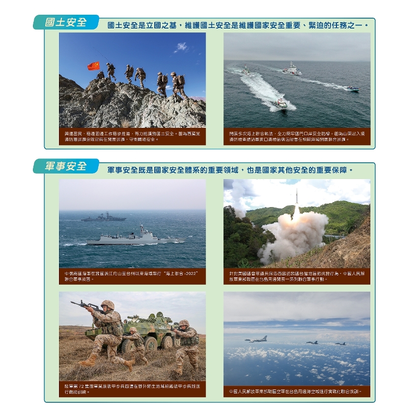 第二部分展示的內容包括:面對嚴峻複雜的國家安全形勢,中央始終把防範化解重大風險擺在突出位置,致力維護傳統安全、非傳統安全,以及新型安全領域,着力提升維護國家安全能力,有力應對各類威脅挑戰,切實維護國家主權、安全和發展利益等。