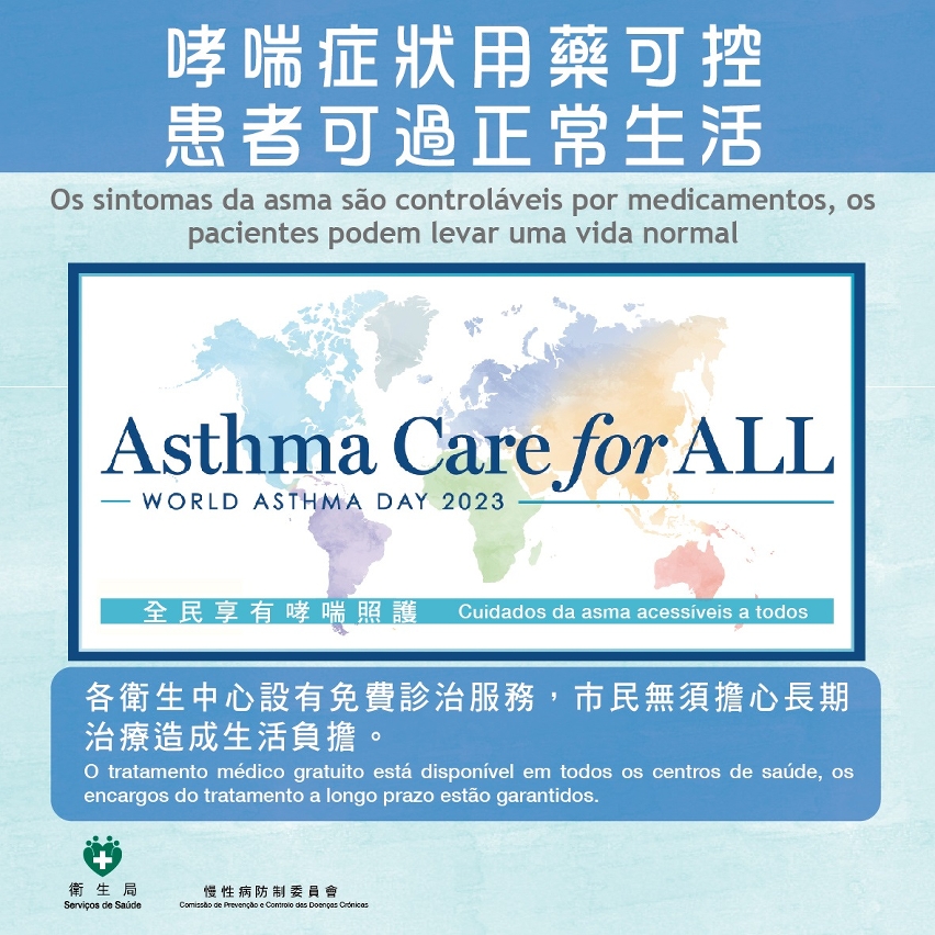 衛生局表示,哮喘急性發作時會出現咳嗽、胸悶、氣喘甚至呼吸困難,嚴重可導致死亡,哮喘已被列入《慢性非傳染性疾病預防和控制的全球行動計劃》和《聯合國2030年可持續發展議程》,而其中的《慢性非傳染性疾病預防和控制的全球行動計劃》提及,“全民健康覆蓋的重要性,特別要通過初級衛生保健和社會保障機制實視全民覆蓋,以便向所有人尤其最貧窮階層,提供獲取衛生服務的機會”、“必須確保這些服務的使用不會讓使用者陷入經濟困境”。事實上,許多國家哮喘患者獲取哮喘藥物仍是難題,世界衛生組織資料顯示,2019年在低收入國家初級公共衛生保健設施中,僅一半哮喘患者使用支氣管擴張劑,不到五分之一患者使用類固醇吸入劑。為此,衛生局一直致力為本澳居民提供全面初級醫療保健服務,針對慢性疾病儘量做到早發現、早治療,及治療藥物不會對居民造成經濟負擔,甚至大部分治療藥物也在醫療保障範圍,令患者無須額外支付高昂的藥物治療費用;同時,積極增強公眾對哮喘病防治和自我管理的認知,減少對哮喘用藥的誤解。