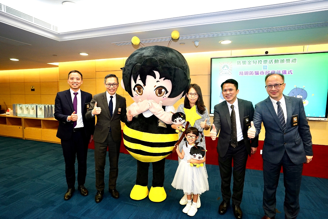 同場,司警局還進行精明防騙市民嘉許儀式,向六名市民頒發精明防騙嘉許狀,表揚他們充分發揮警民合作精神,成功協助警方阻止身邊的親友、同學或子弟墮入騙局,樹立良好榜樣,為維護大眾財產安全作出貢獻。有獲嘉許的市民表示,平時有留意警方發放的防騙資訊,故當察覺到有親友可能遭受詐騙,立即作出提醒,勸阻他們匯款,並馬上向警方舉報。