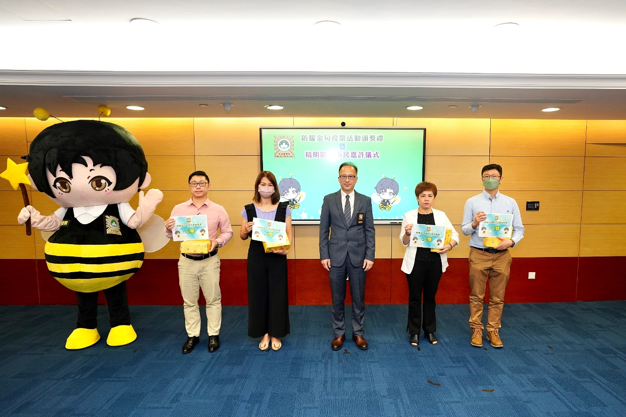 為喚起公眾對新型騙案的關注和警惕,促進警民合力防範電信詐騙,司法警察局舉辦的“防騙金句齊投票”有獎活動已圓滿結束,並於昨日舉行頒獎禮。同場,司警局還嘉許多位精明防騙市民,表揚他們及時提醒親友免墮騙局,為警民合作共同防罪滅罪樹立良好榜樣。